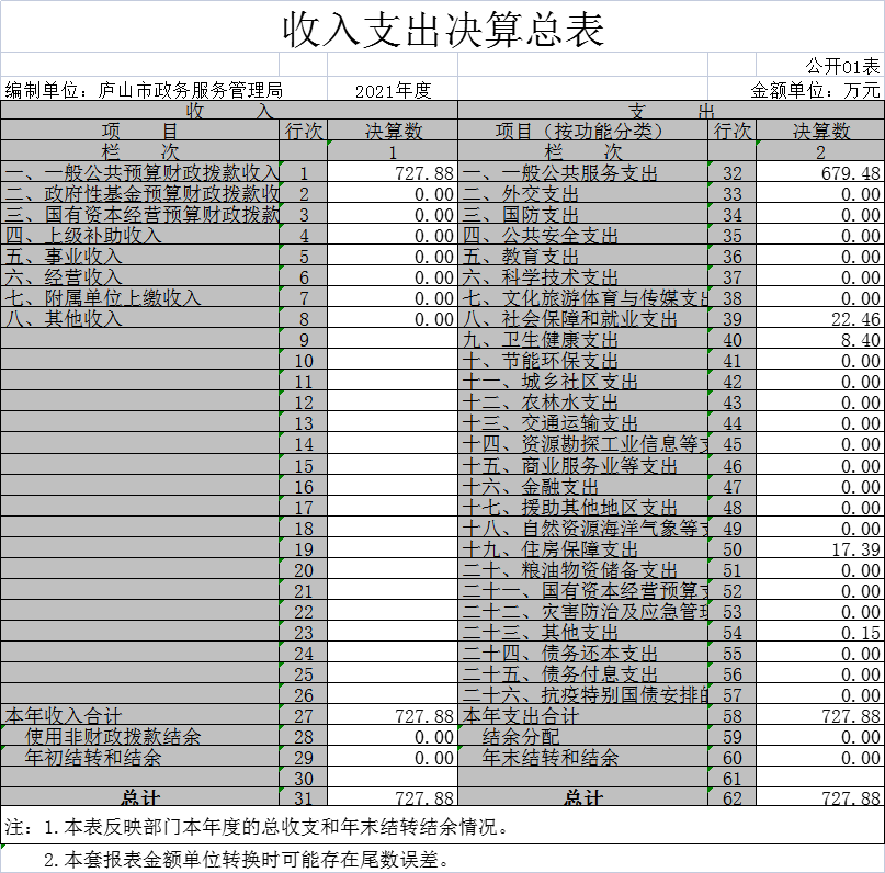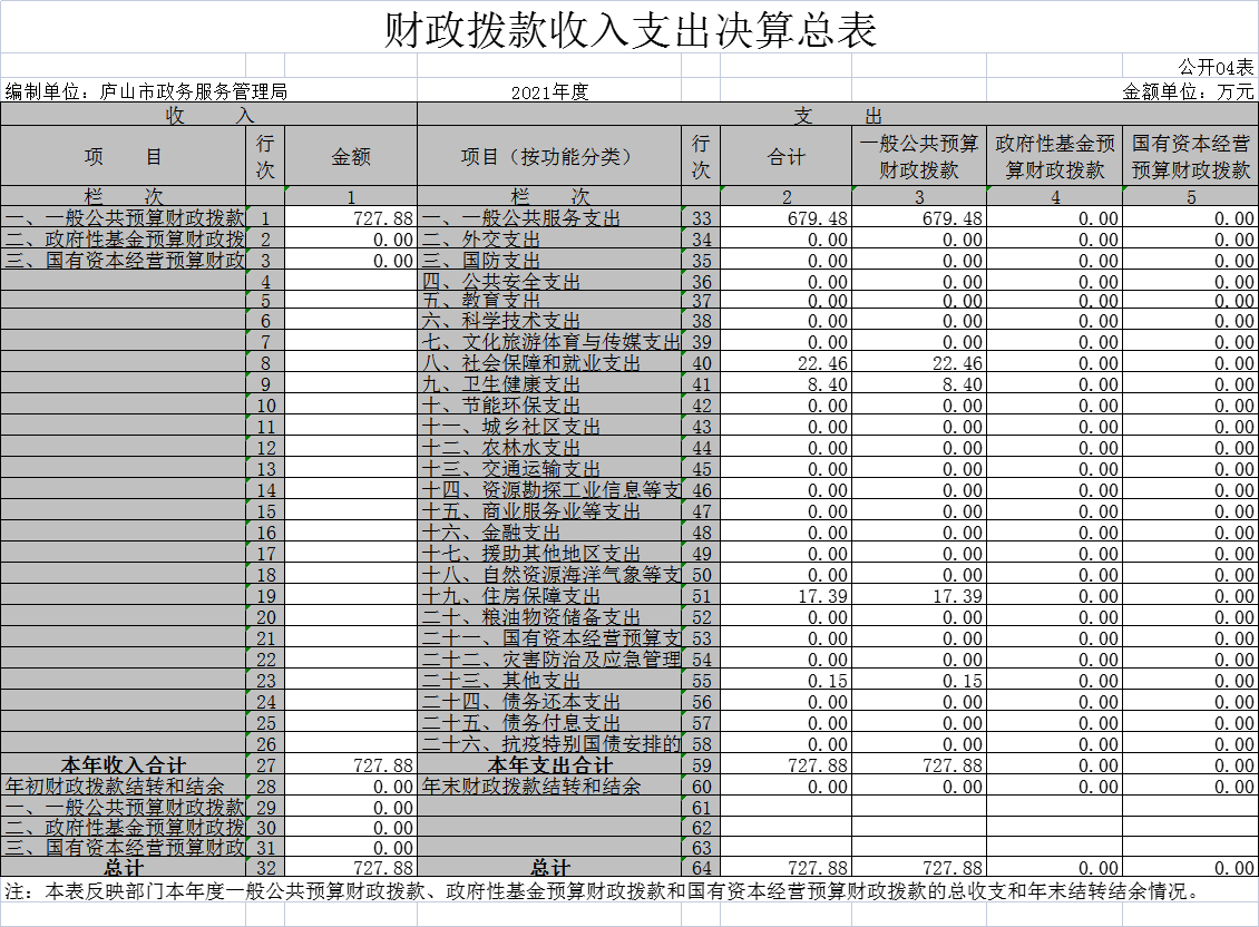 庐山市政务服务管理局2021年度部门决算公开