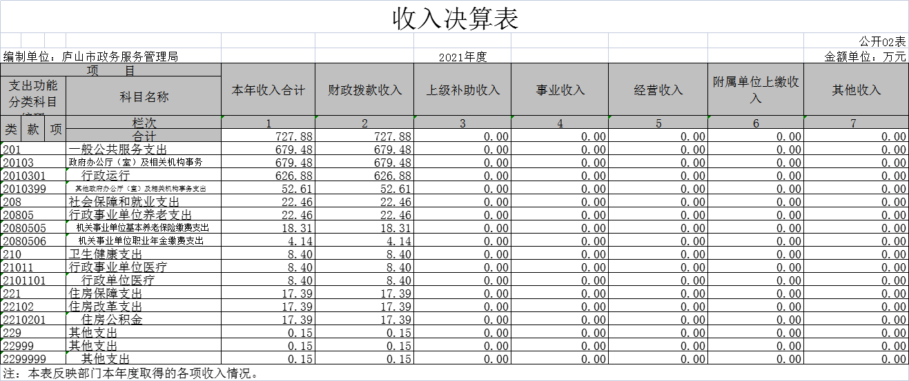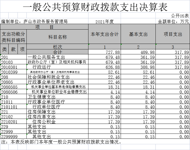 庐山市政务服务管理局2021年度部门决算