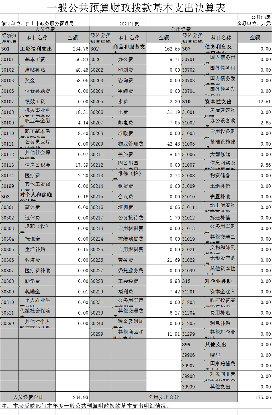 五、基本支出:指为保障机构正常运转、完成日常工作任务而发生的人员经费和公用经费。其中:人员经费指政府收支分类经济科目中的“工资福利支出”和“对个人和家庭的补助”;公用经费指政府收支分类经济科目中除“工资福利支出”和“对个人和家庭的补助”外的其他支出。