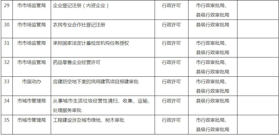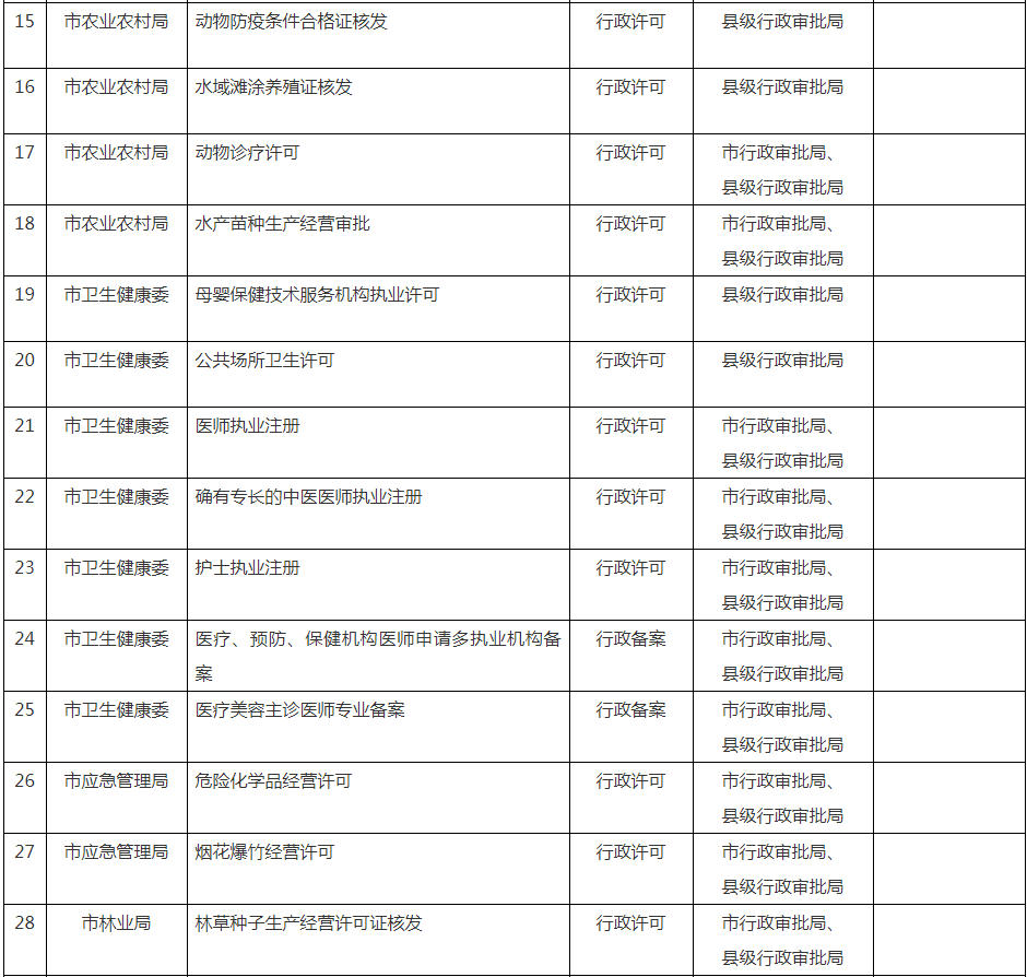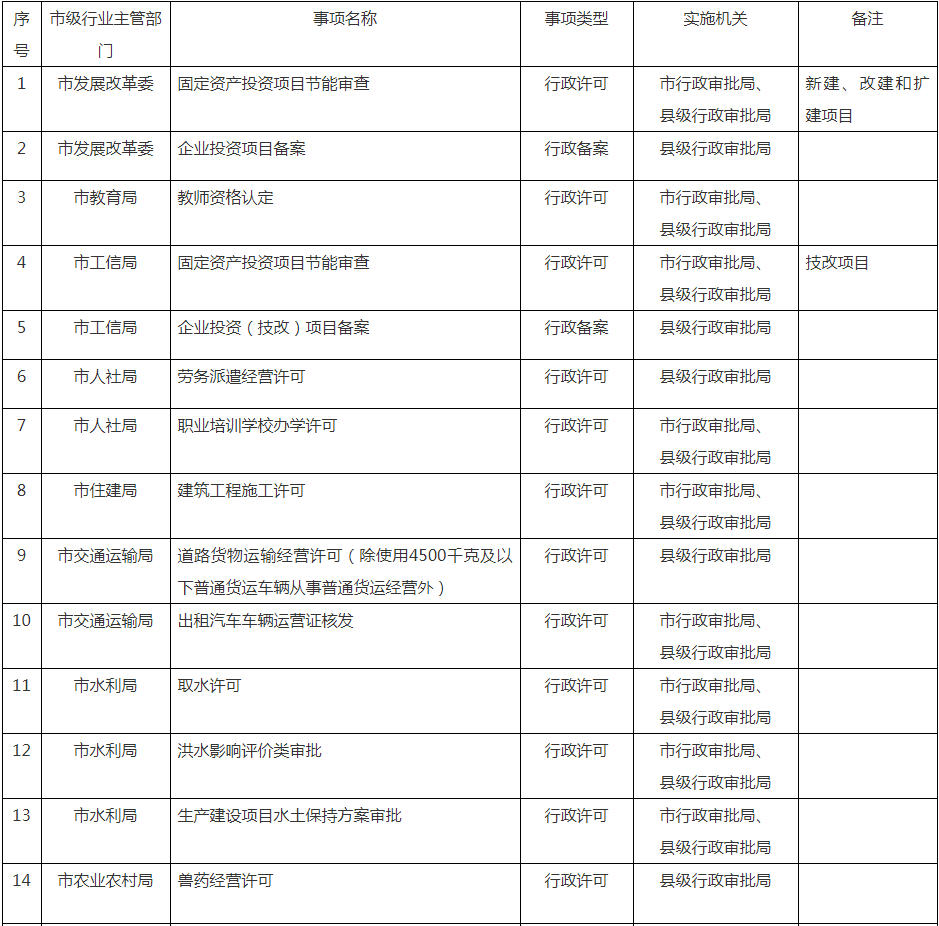 相对集中行政许可权改革县级划转事项指导目录