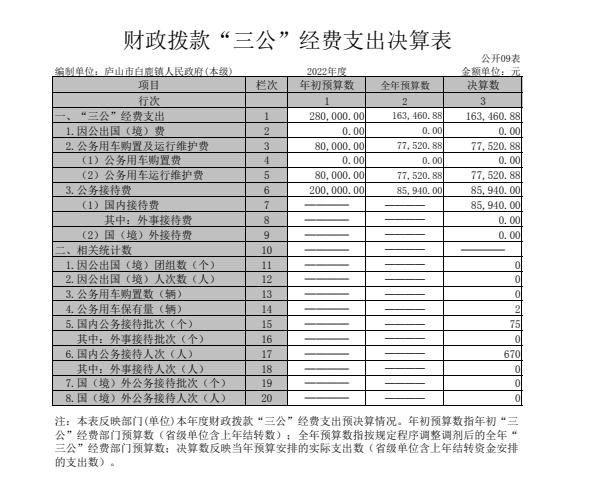 2022年白鹿镇财政拨款三公经费支出决算表