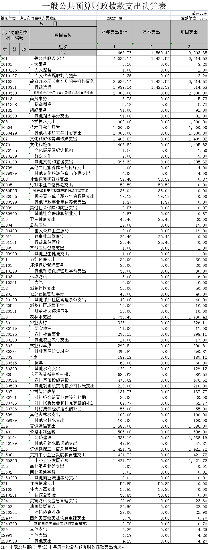 海会镇部门2022年度部门决算公开