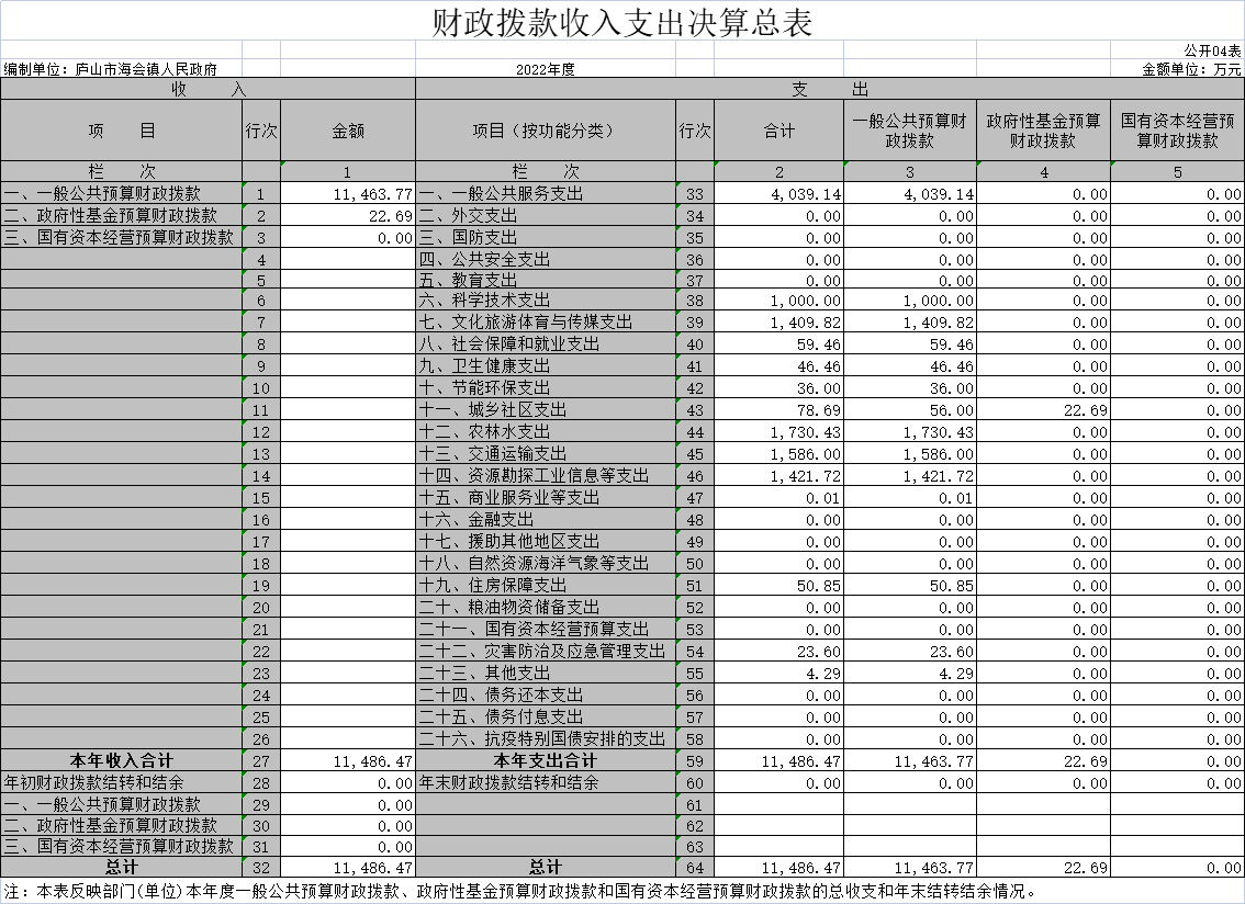 海会镇人民政府2022年度单位决算公开