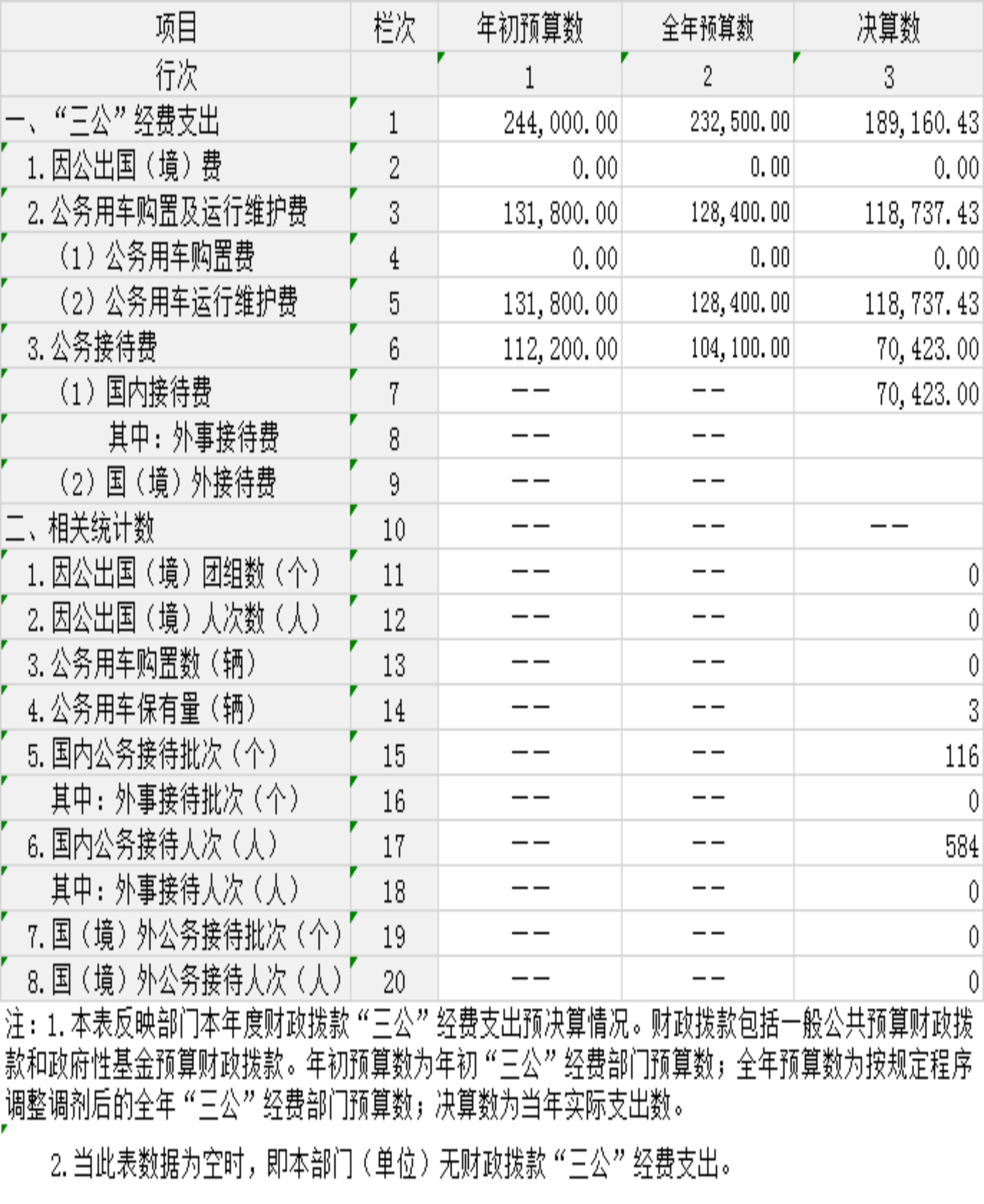 ——与上年对比分析。财政拨款“三公”经费支出18.91万元,比上年增加7.73万元,增长69.26%。其中:因公出国(境)0个团组计0人次,因公出国(境)费0.00万元,与上年持平;购置公务用车0辆,公务用车购置费0.00万元,与上年持平;年末保有公务用车3辆,公务用车运行维护费11.87万元,比上年增加1.90万元,增长19.02%,变动的主要原因是因人员变动,闲置的领导用车被重新启用,故而公务用车运行维护费有所增加;国内公务接待116批次计584人次,公务接待费7.04万元,比上年增加5.84万元,增长487.40%,变动的主要原因是2022年公务接待费出账不及时,导致上年度年初预算公务接待费财政拨款削减严重。