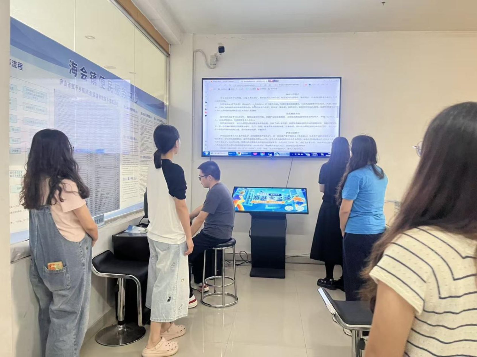 活动伊始,海会镇便民服务中心主任胡蓉带领群众代表直奔政务公开核心区域,以 “边走、边看、边讲解” 的方式,全方位展示政务公开专区功能。代表们先后参观了业务办理区、便民服务大厅等关键区域,胡蓉主任不仅详细介绍了各窗口的服务事项、办理流程及便民举措,还现场操作演示了数字媒体查阅政务公开栏的方法 —— 从登录平台、检索信息到查看政策文件,每一步都耐心讲解,确保代表们能 “看得懂、会使用”,真正实现政务信息 “触手可及”,让代表们对政务服务体系有了更直观的认知。实地观摩结束后,海会镇组织开展座谈会,廖镇长向代表们介绍海会镇政务公开重点内容、推进工作的主要做法等,并就群众代表关心关注的问题展开面对面交流讨论,群众代表们在会上积极发言、各抒己见,对海会镇政府服务提出宝贵意见建议。