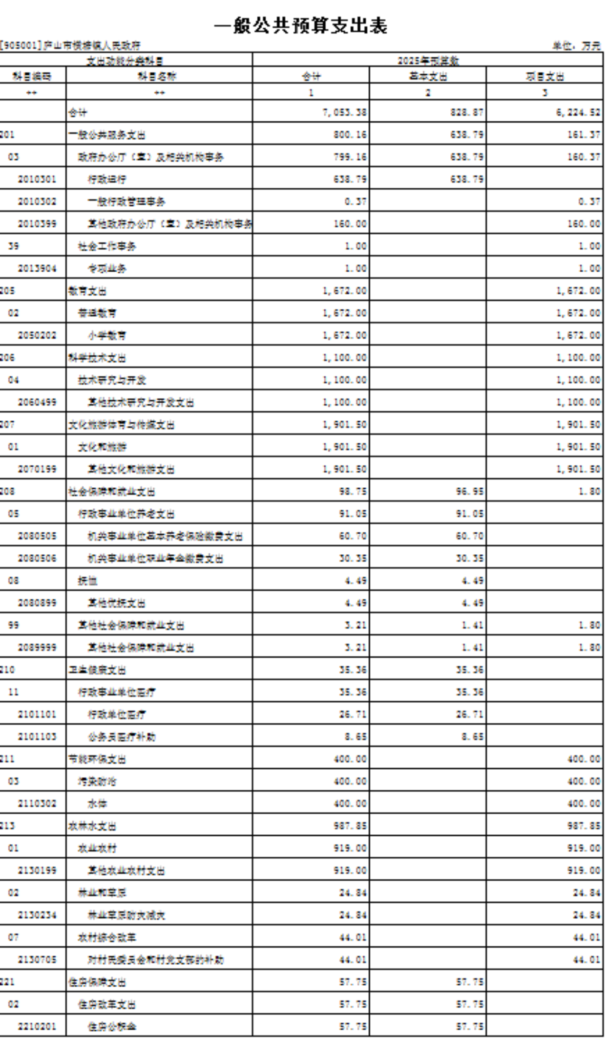 五、《一般公共预算支出表》