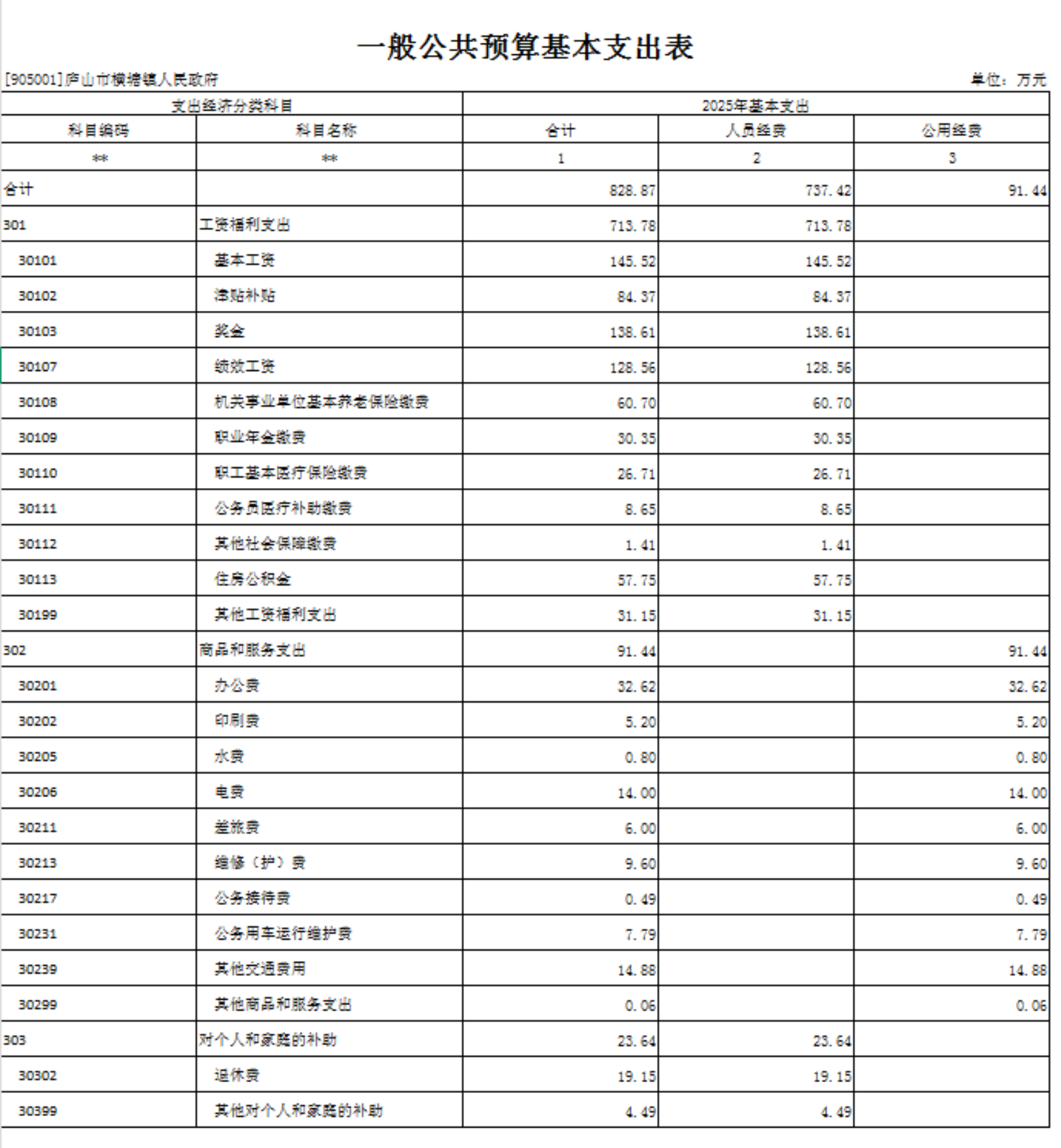 第二部分 庐山市横塘镇2025年部门预算表