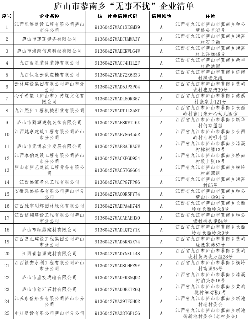 庐山市蓼南乡“无事不扰”企业清单