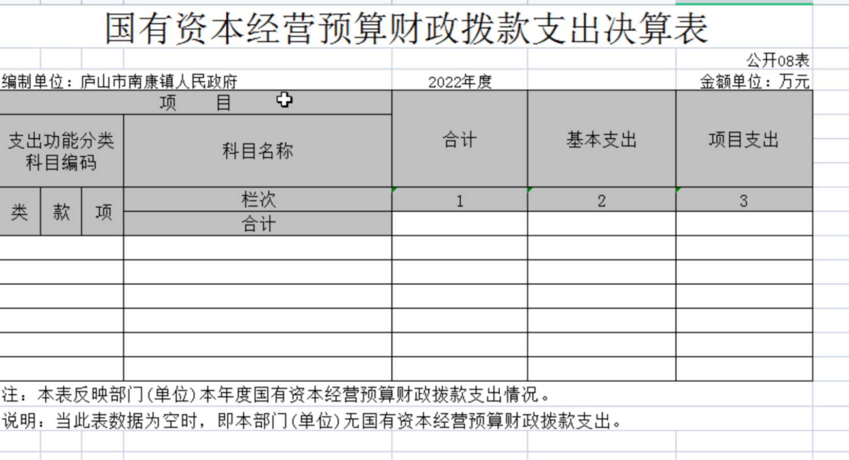八、国有资本经营预算财政拨款支出决算表