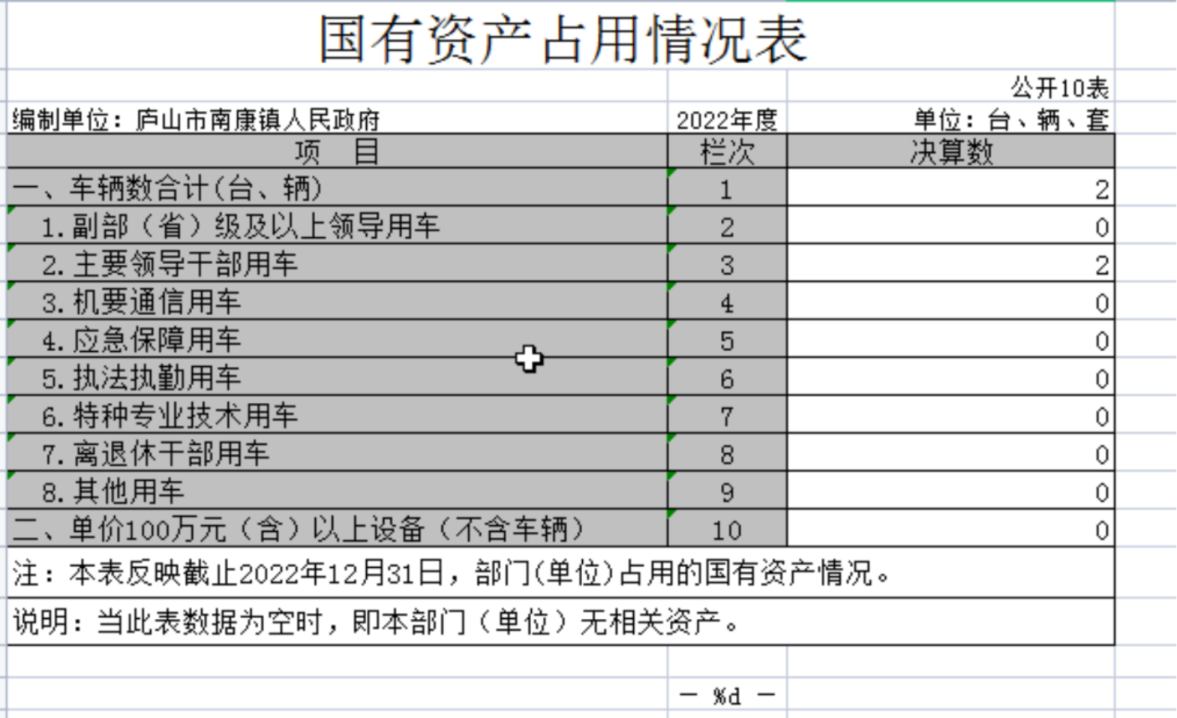 截至2022年12月31日,本单位国有资产占用情况见公开10表《国有资产占用情况表》。其中车辆中的其他用车主要是主要领导干部用车。