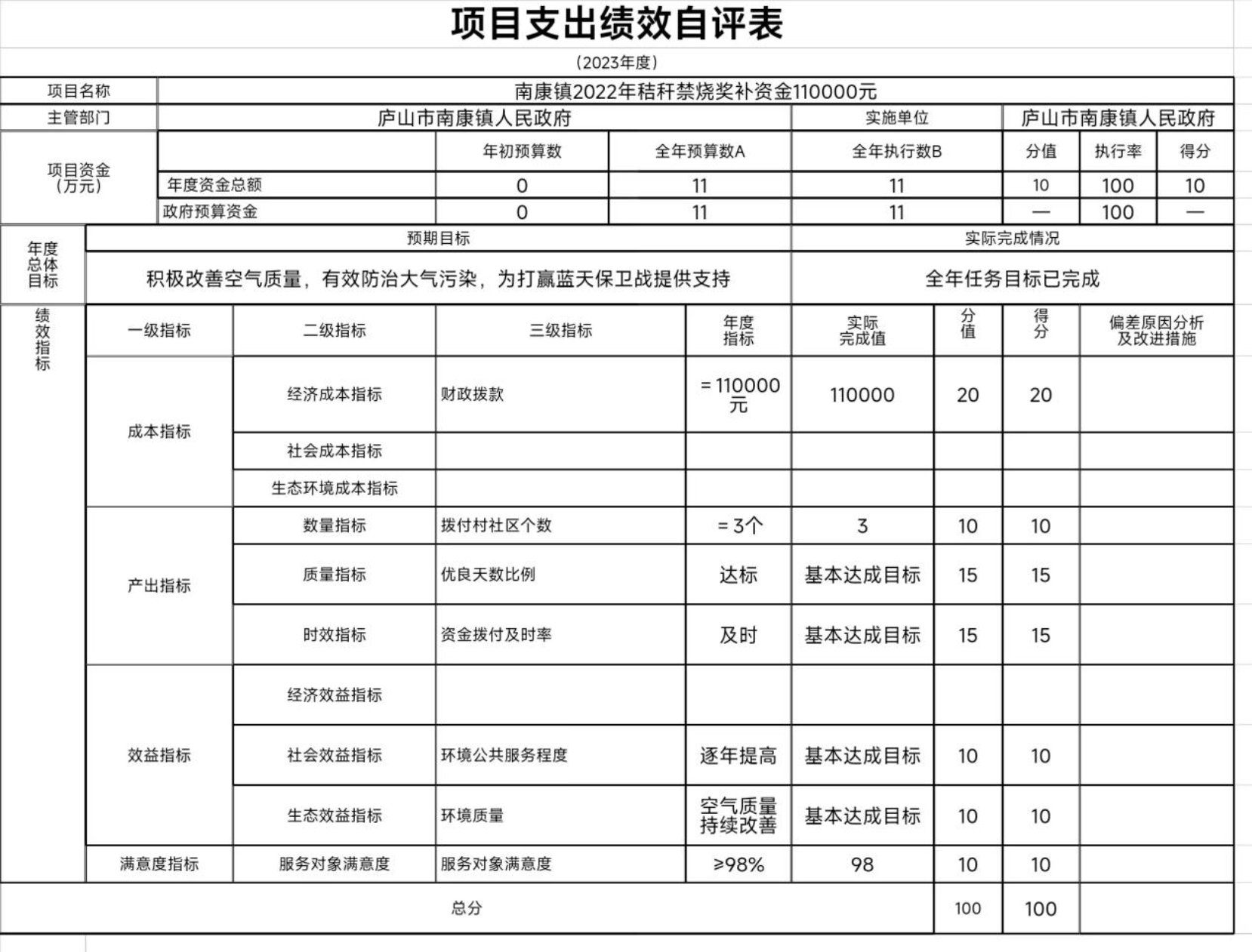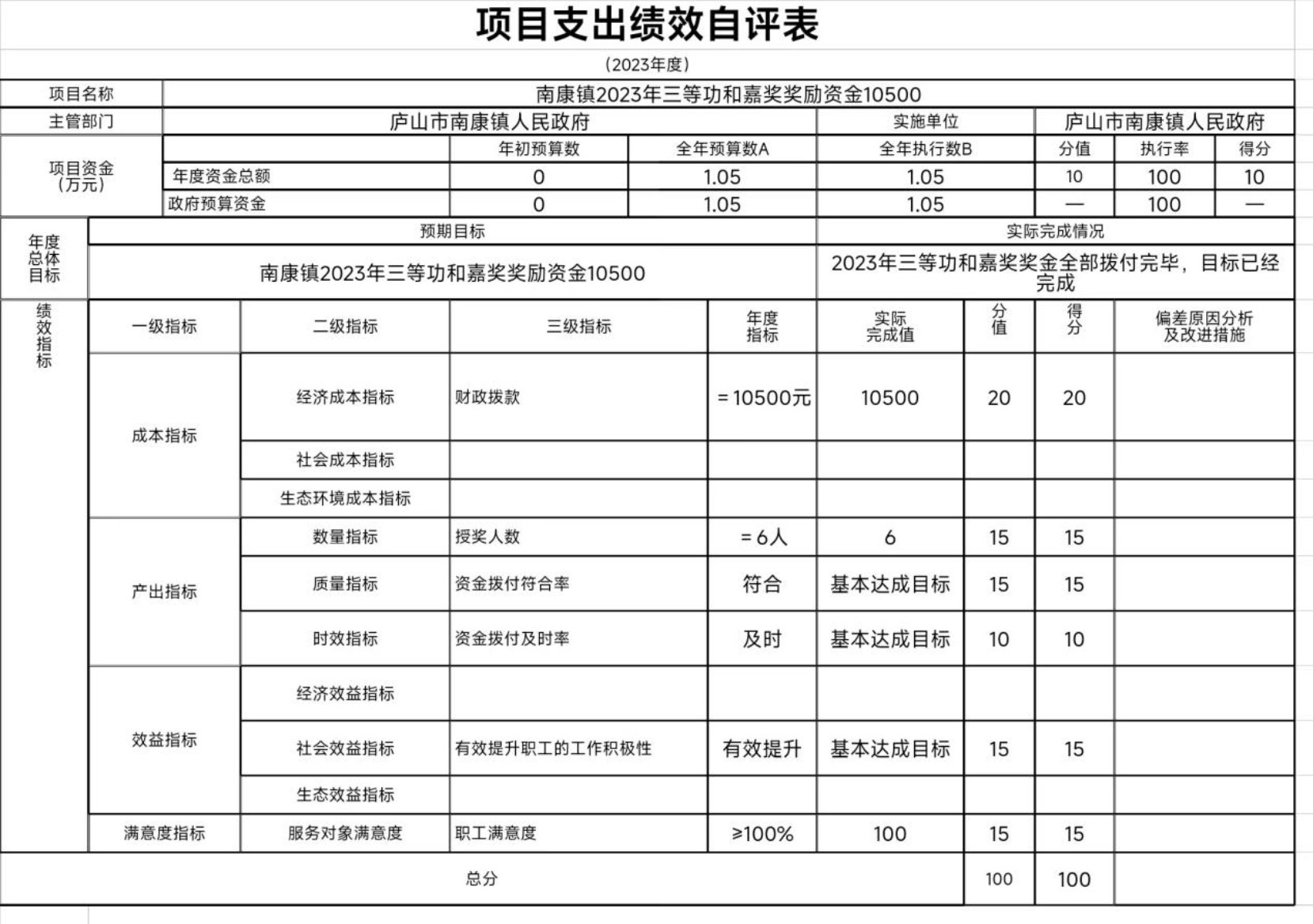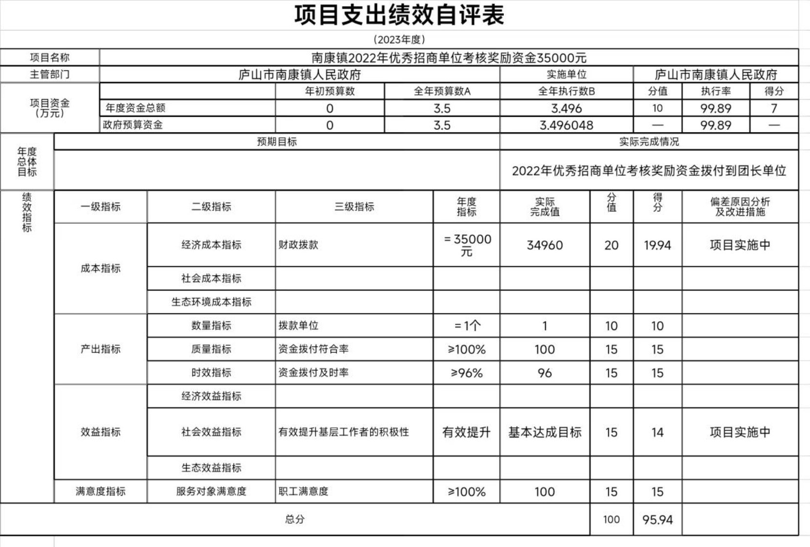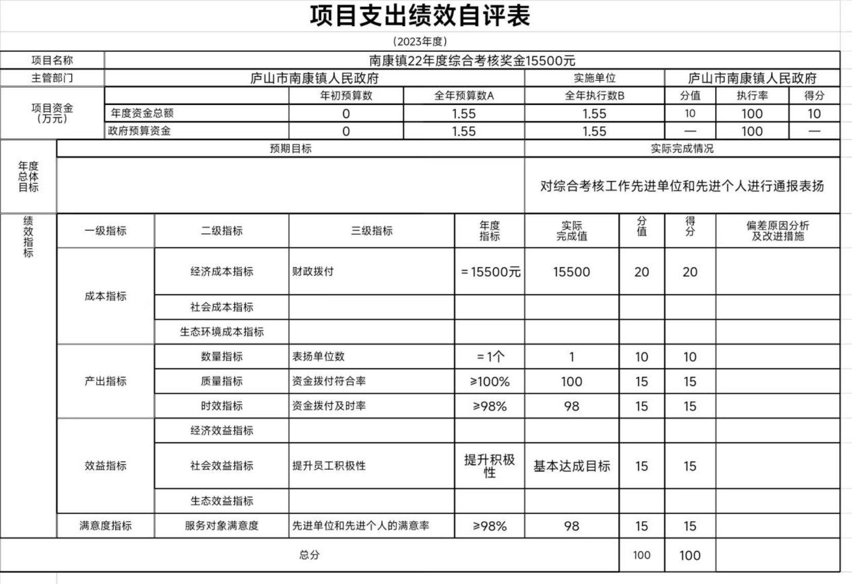 24-本部门“南康镇2022年度综合考核奖金资金”项目支出绩效自评结果如下: