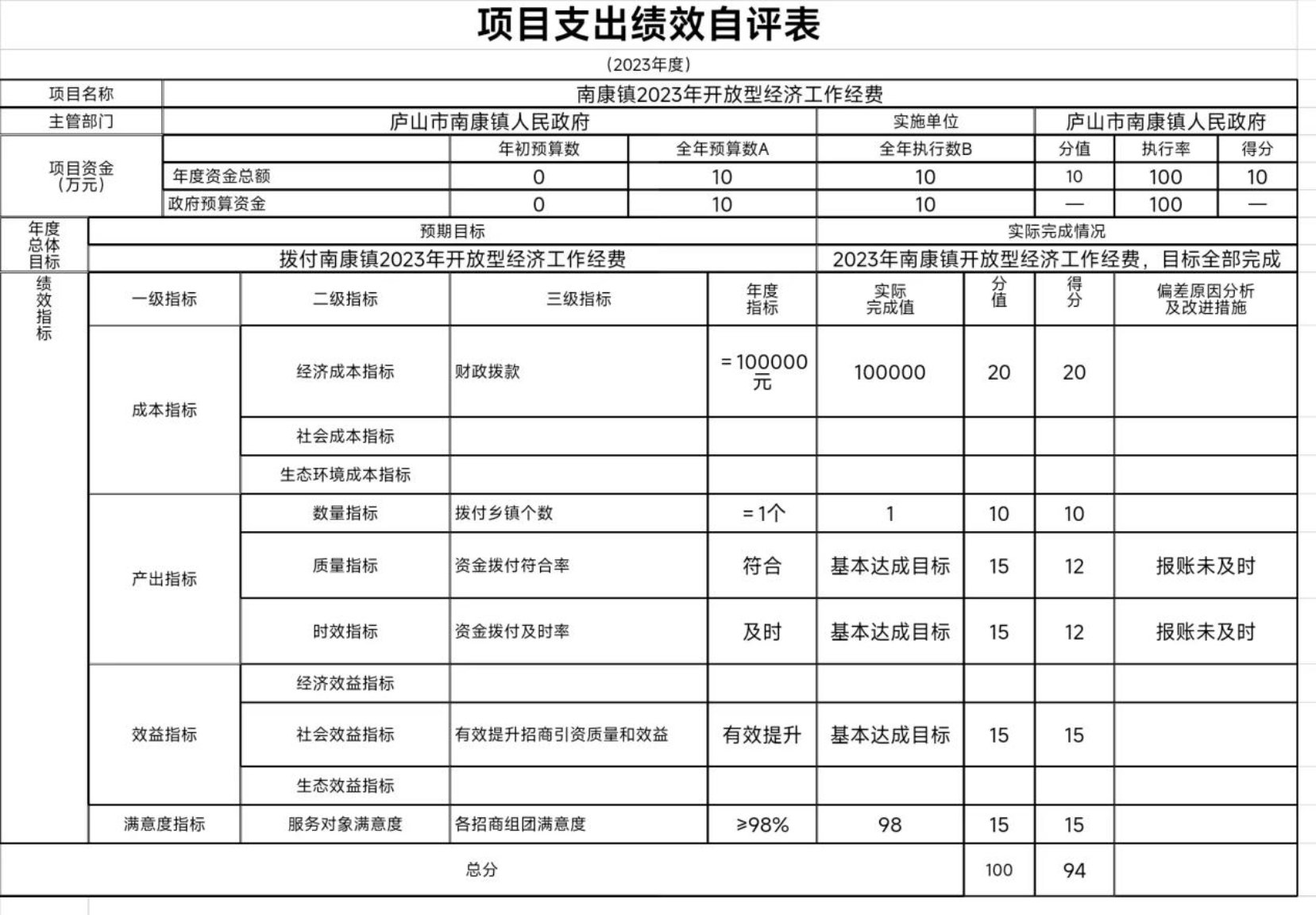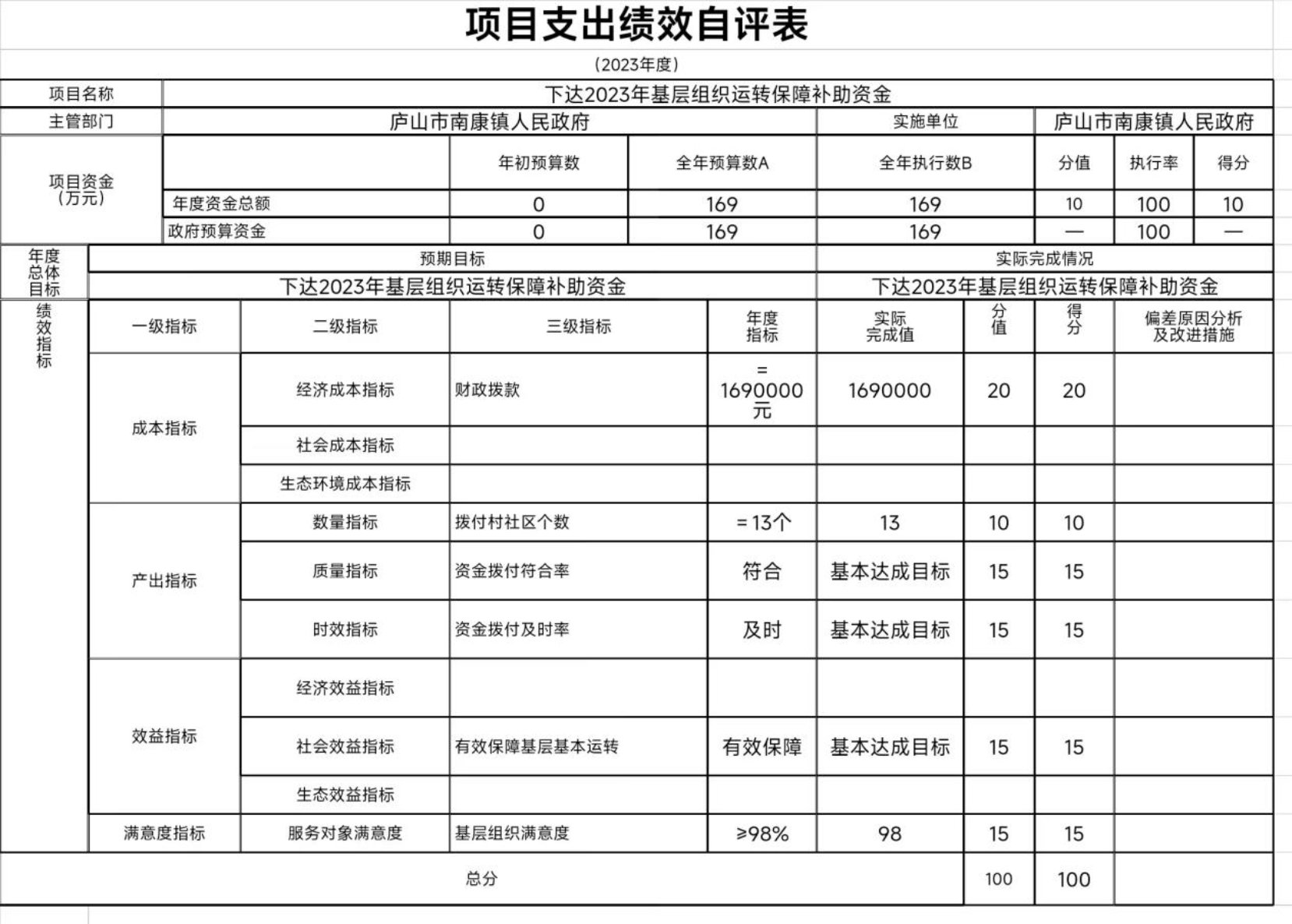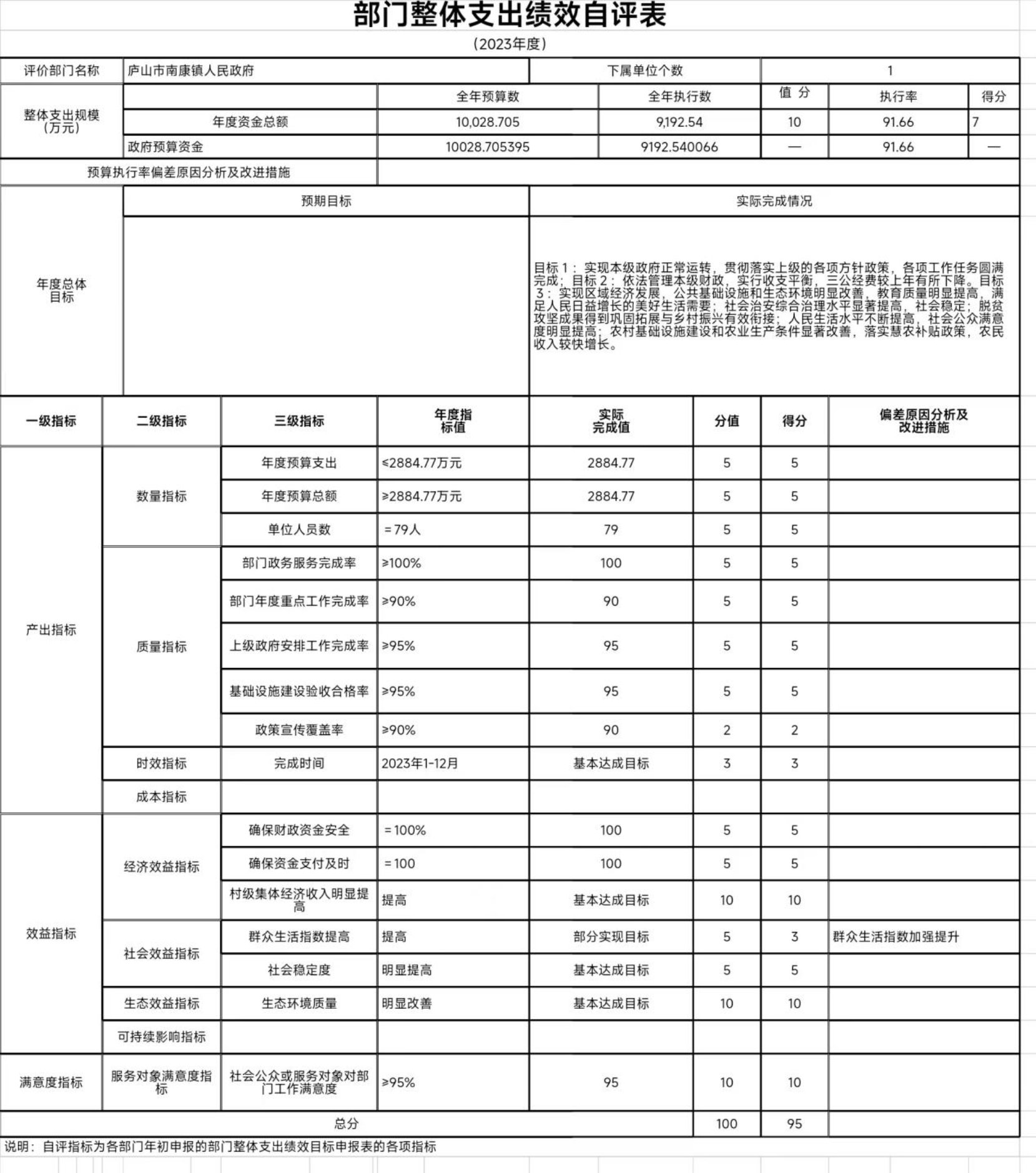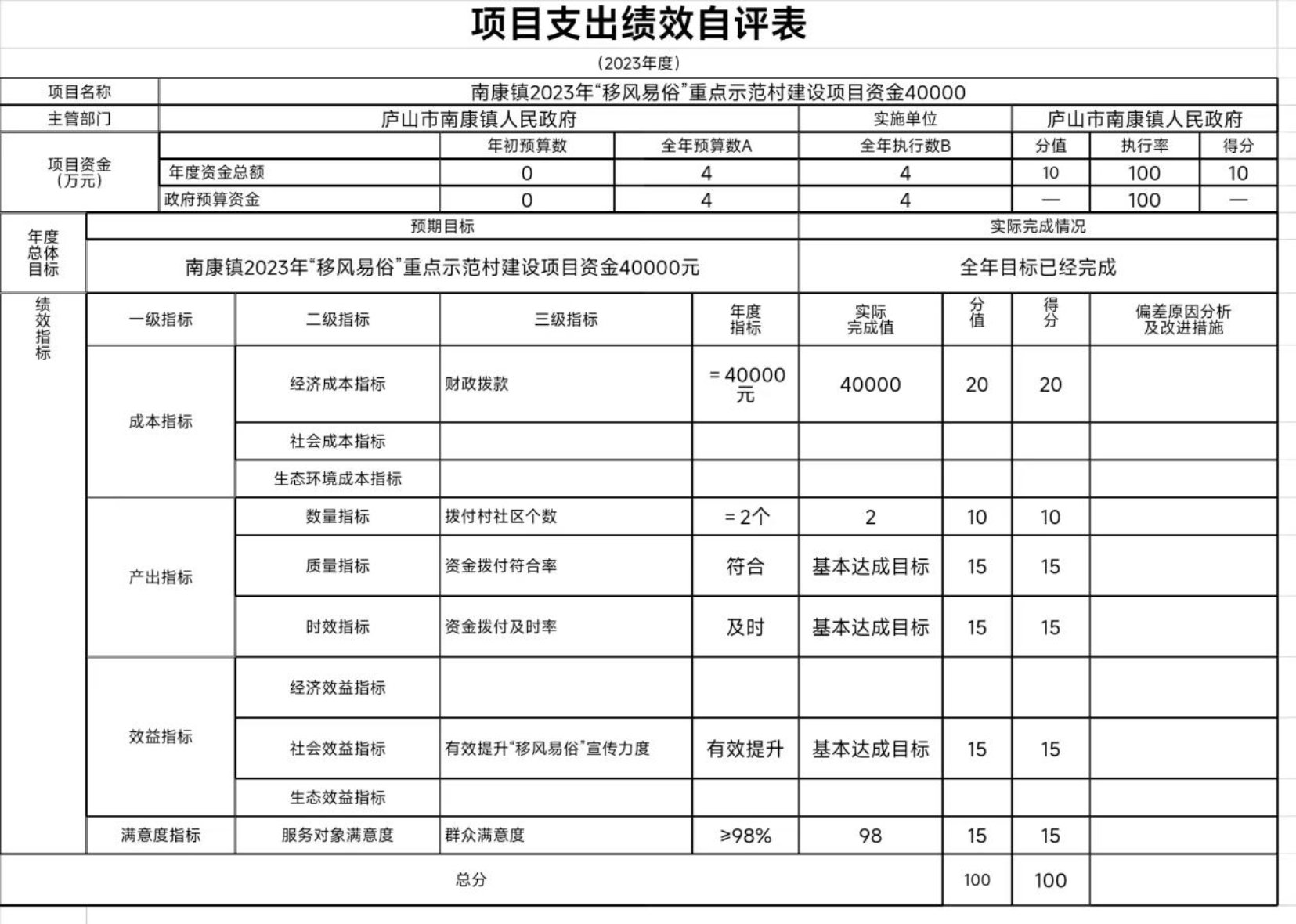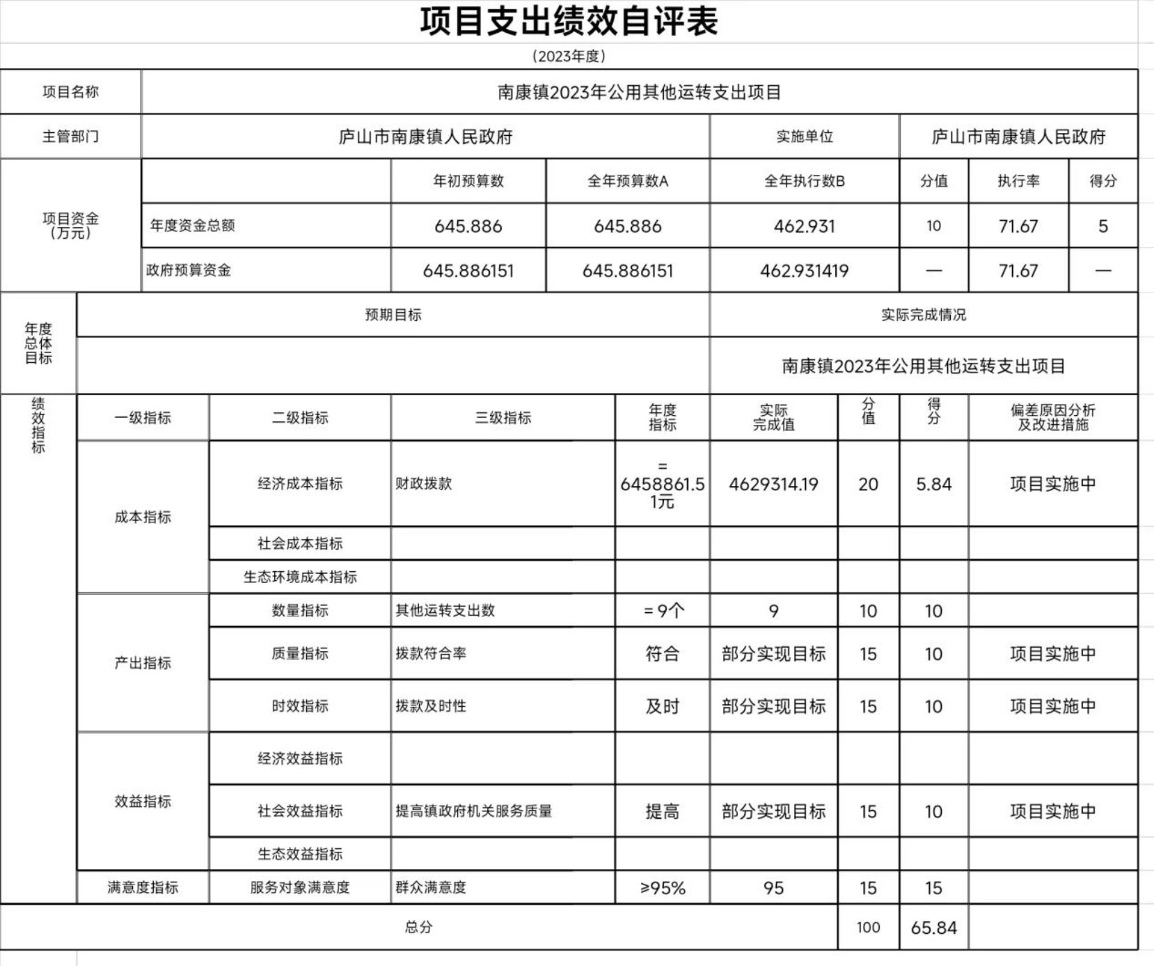 36-本部门“南康镇2023年公用其他运转支出项目资金”项目支出绩效自评结果如下: