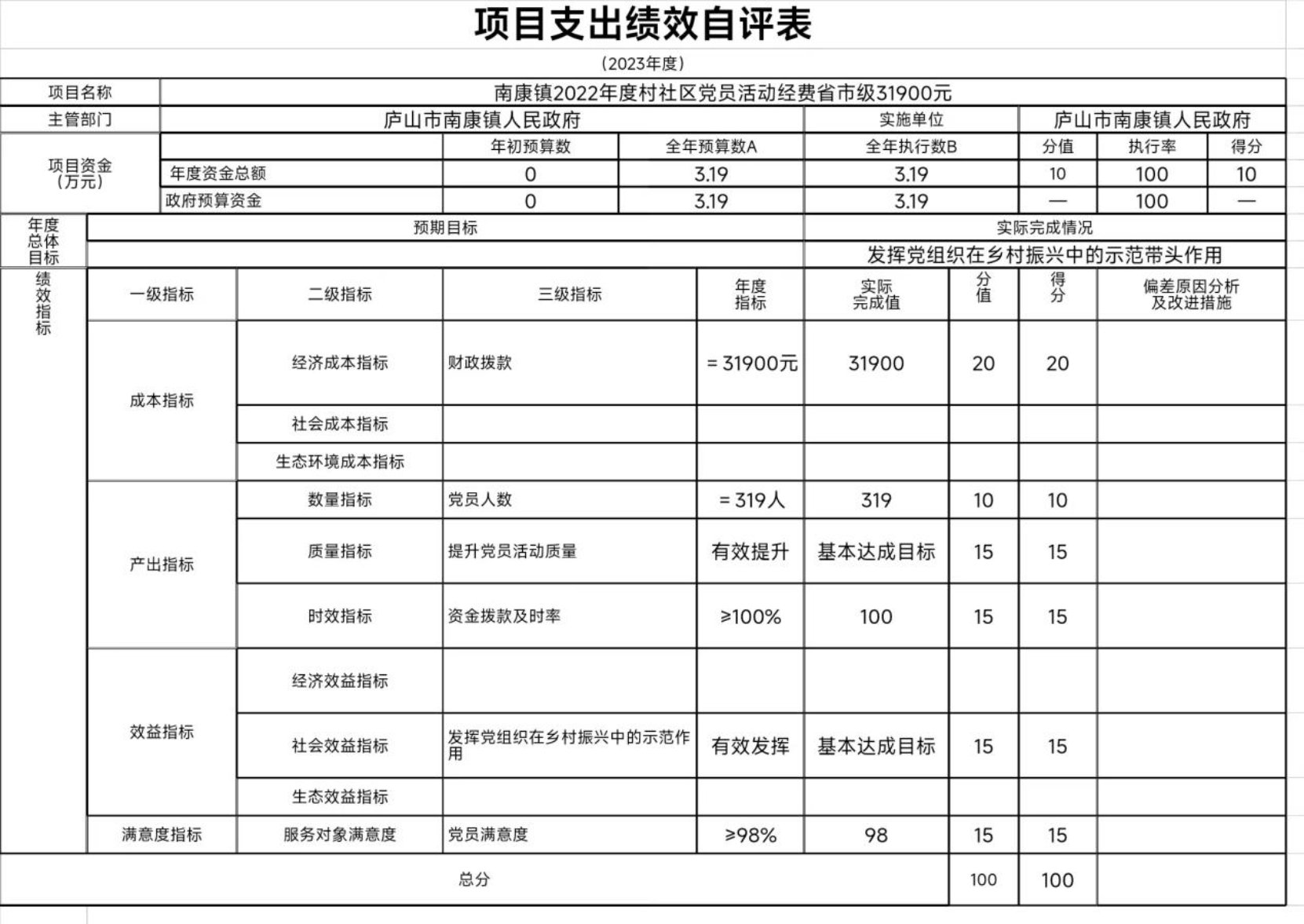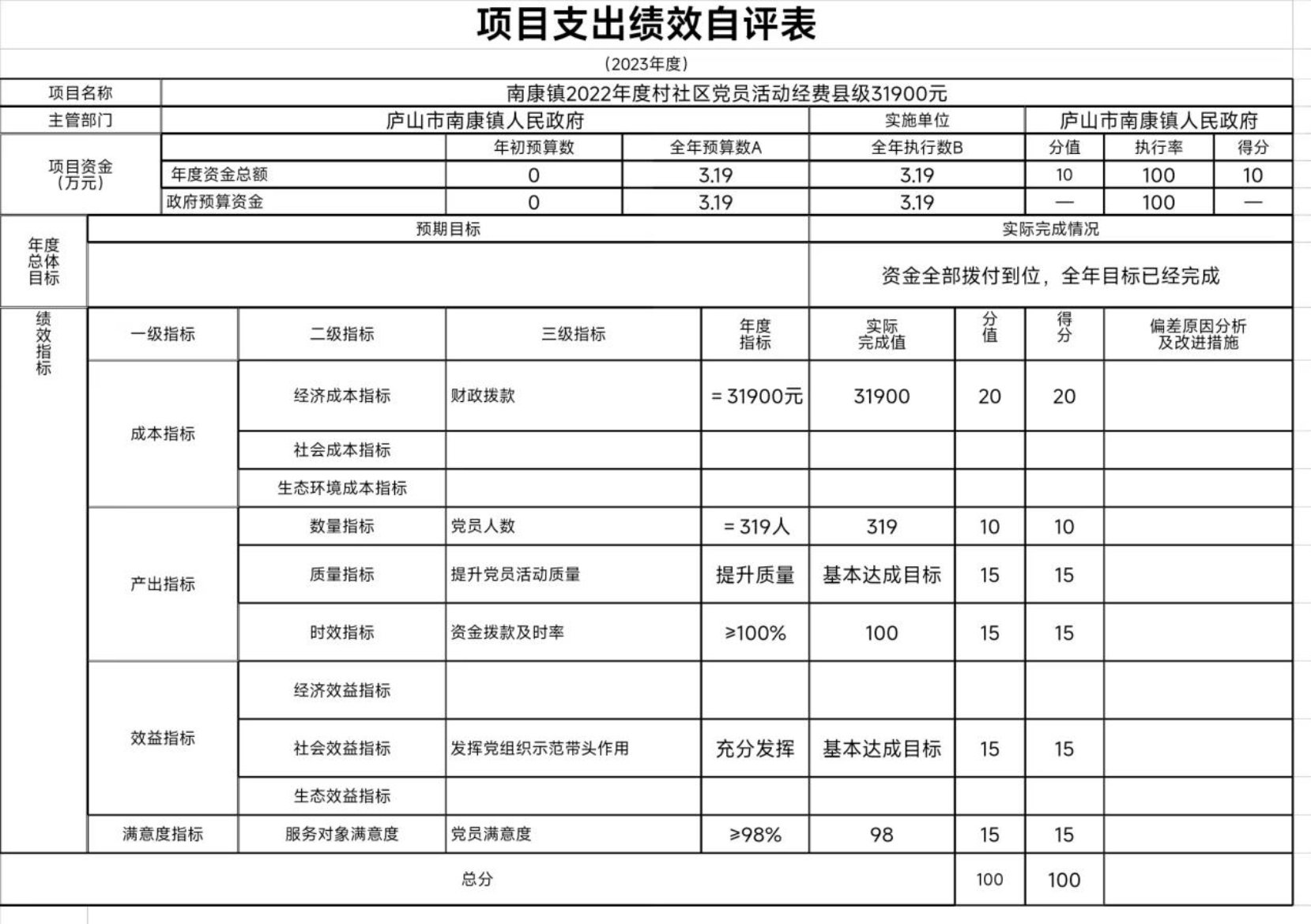 22-本部门“南康镇2022年村社区党员活动经费县级资金”项目支出绩效自评结果如下: