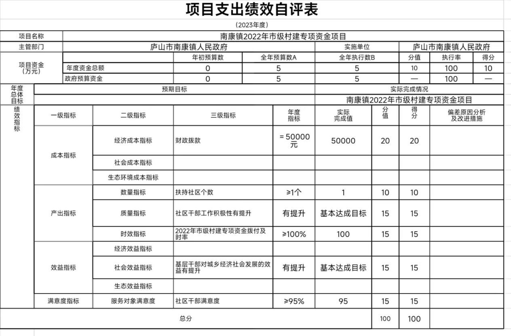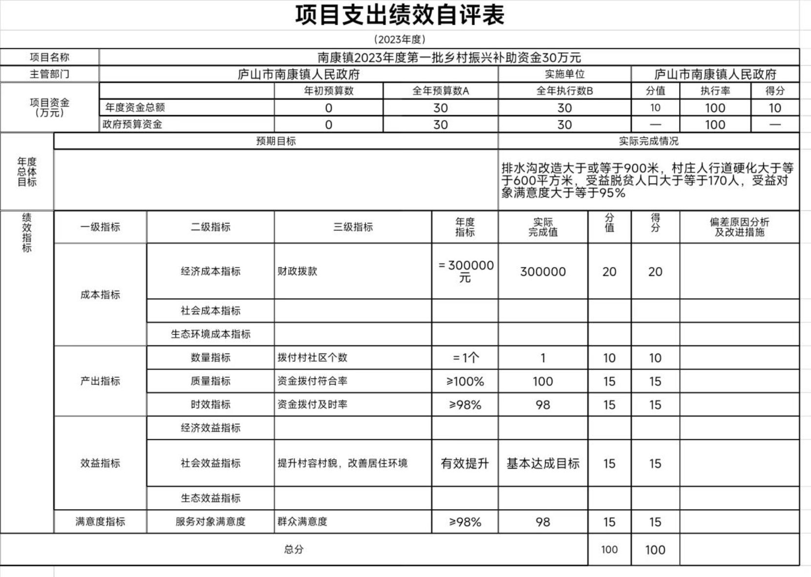 南康镇2023年第一批财政衔接推进乡村振兴补助项目2023年度绩效目标任务全面完成,自评结果是优秀。