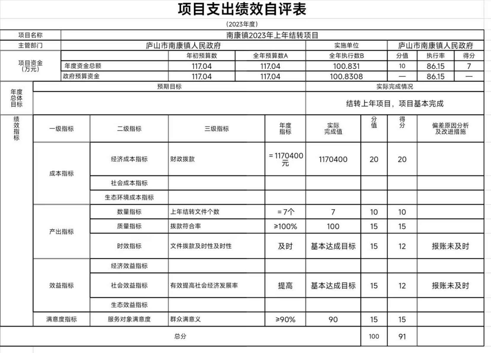 16-本部门“南康镇2023年上年结转项目资金”项目支出绩效自评结果如下: