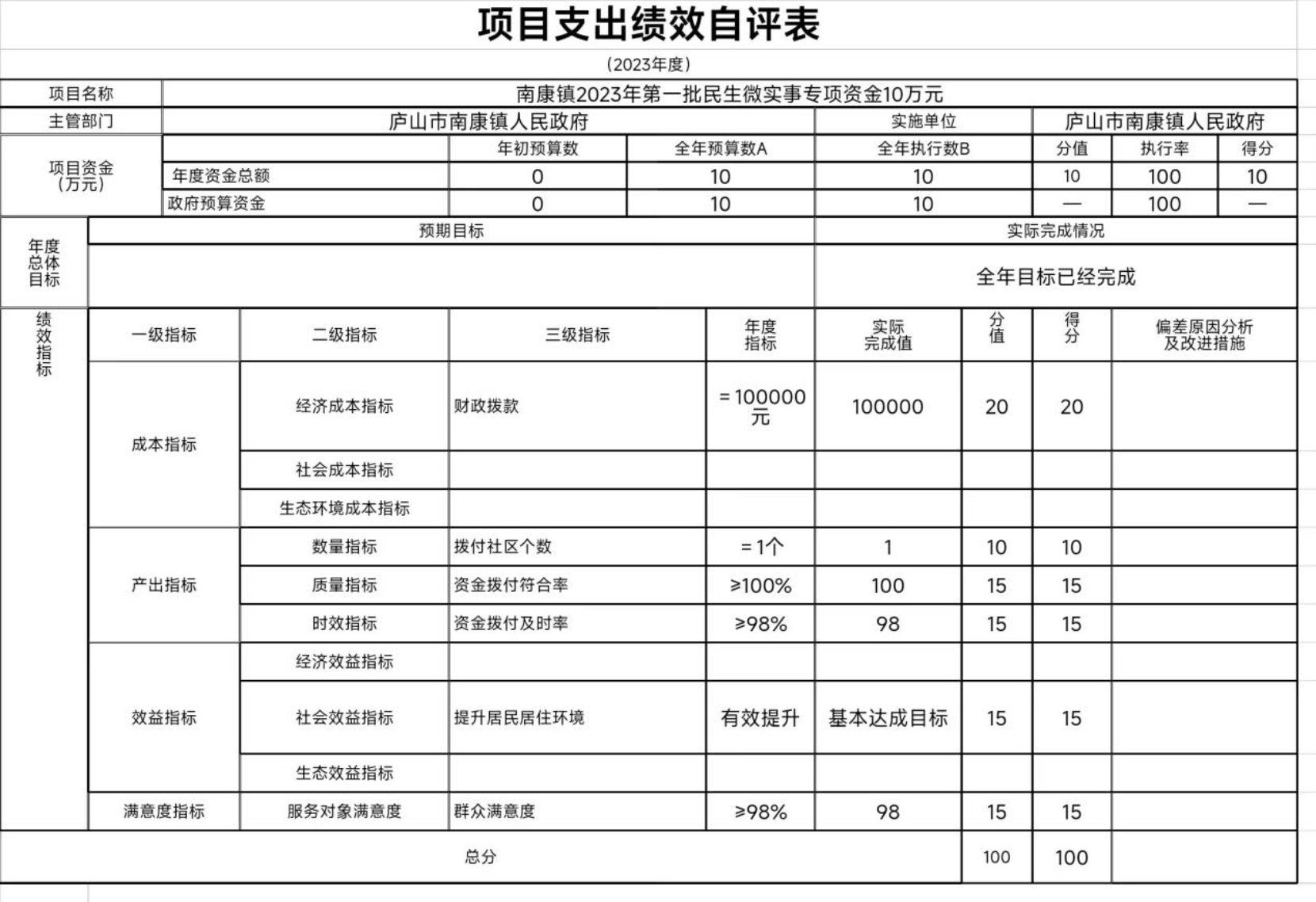 28-本部门“南康镇2023年第一批民生微实事专项资金”项目支出绩效自评结果如下: