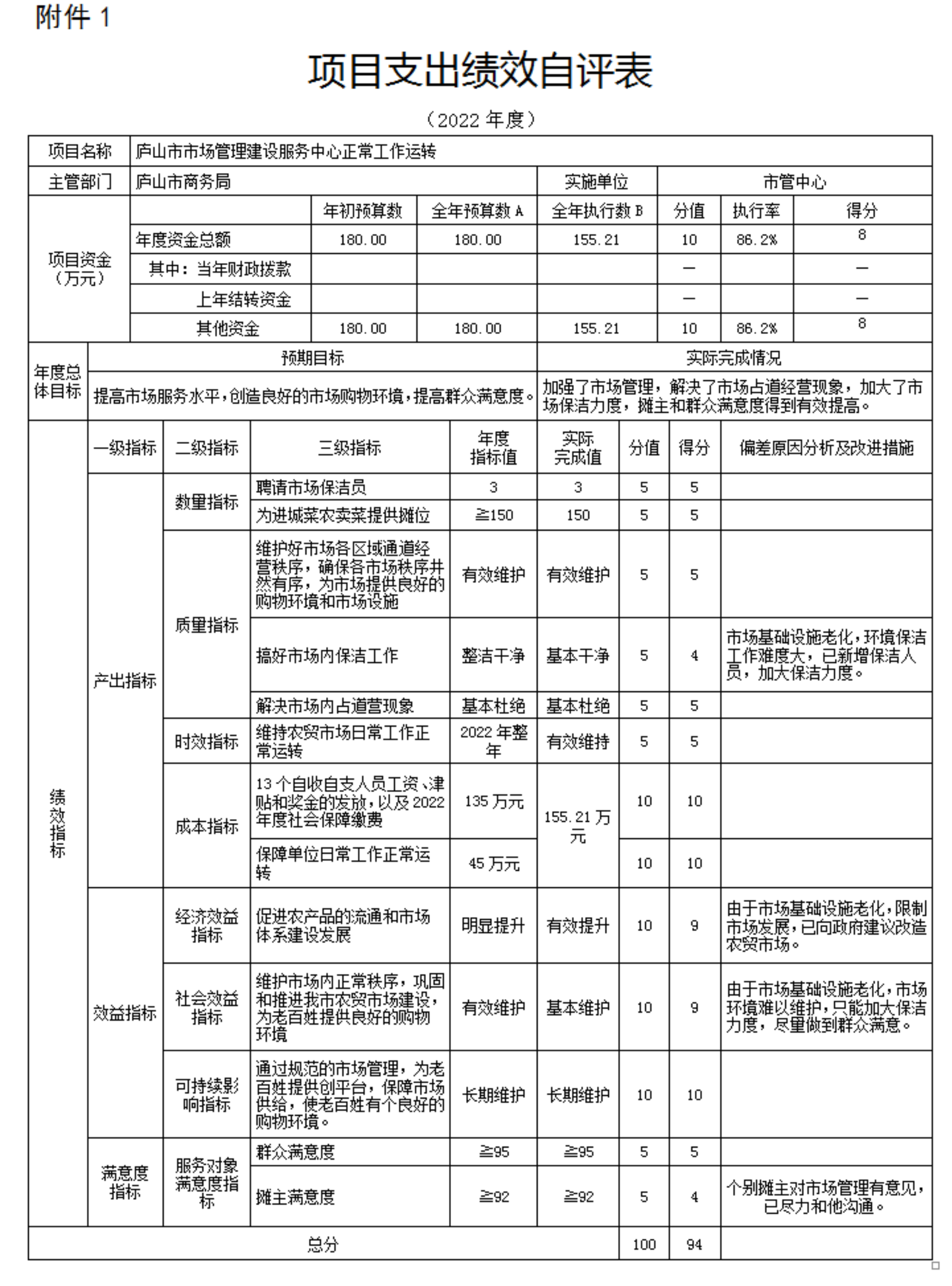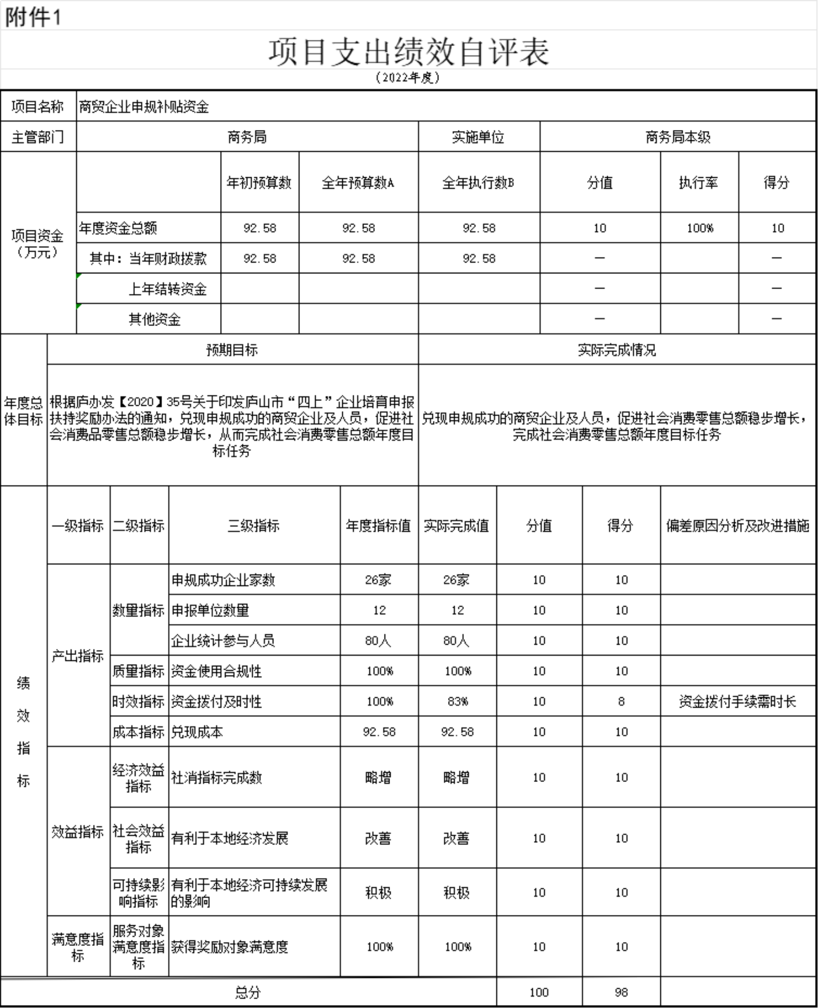 反映2022年度部门绩效自评总报告和《项目支出绩效自评表》公开如下: