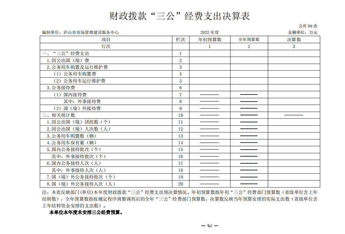 庐山市市场管理建设服务中心2022财政拨款“三公”经费支出决算表