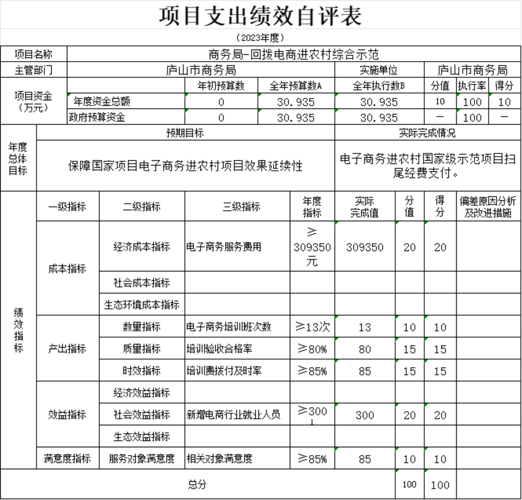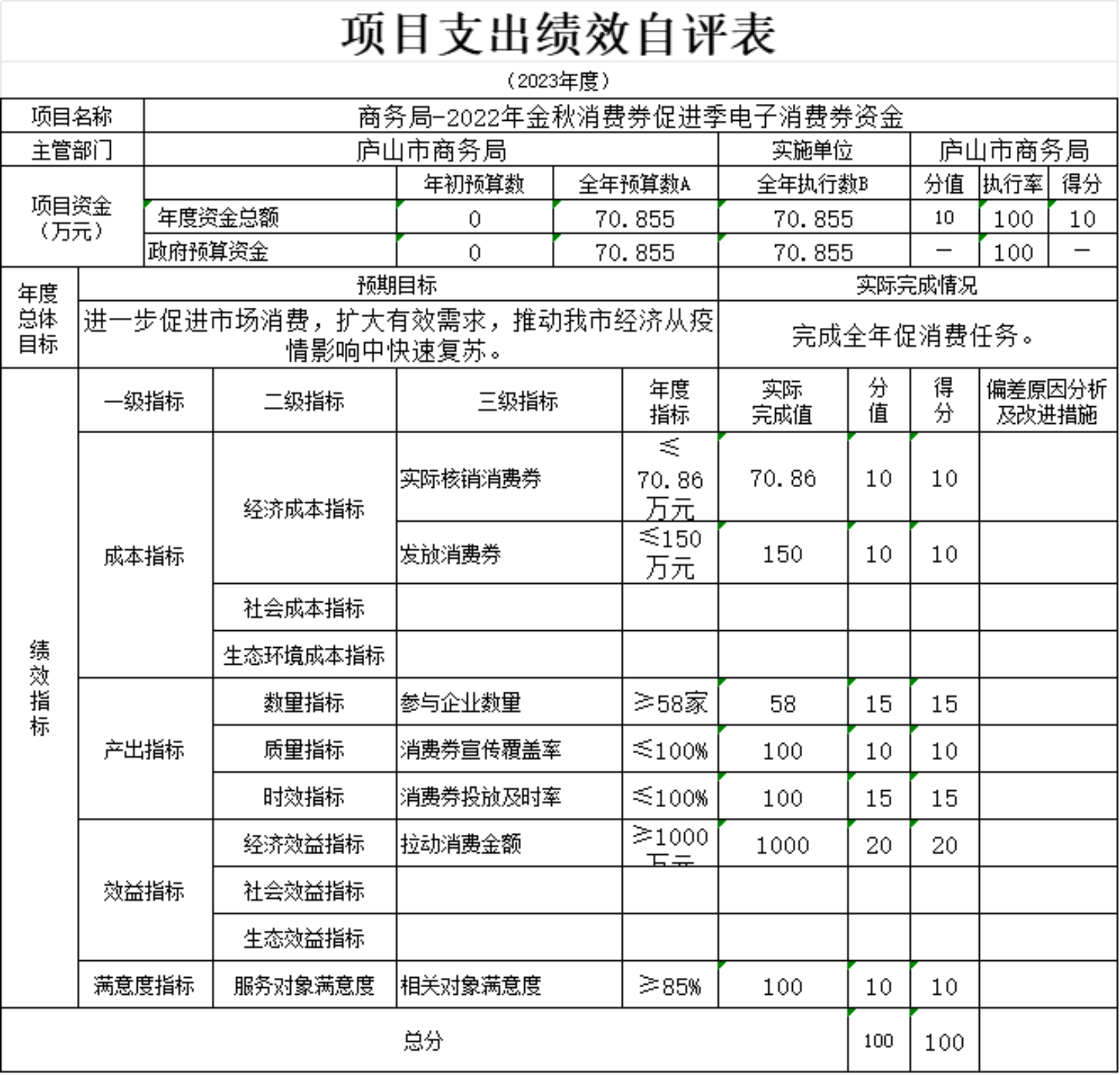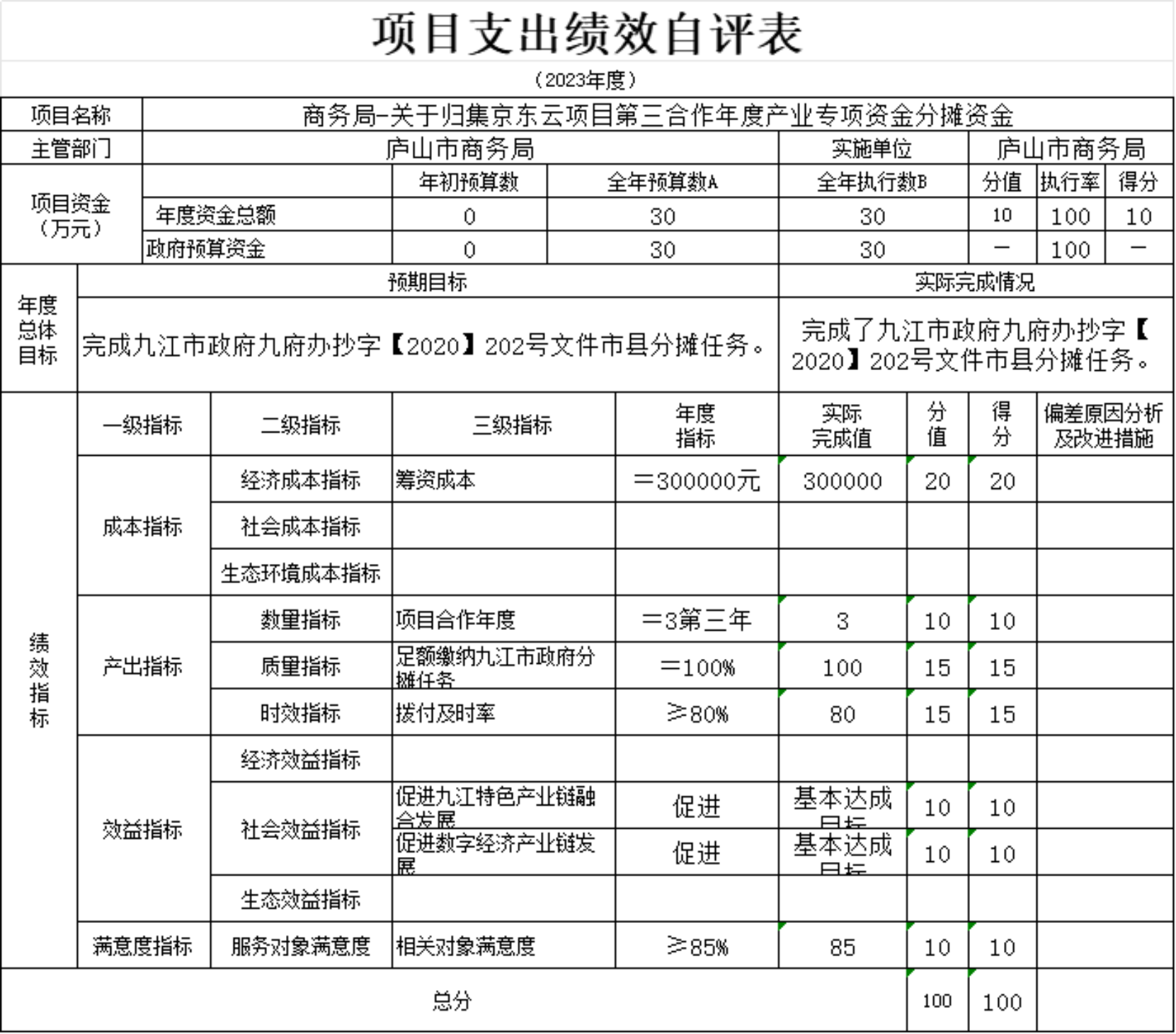 根据预算绩效管理要求,我单位组织对纳入2023年度部门预算范围的二级项目30个全面开展绩效自评,共涉及资金 3441.73万元,占项目支出总额的98.93%。其中,27个项目评价结果为“优”,1个项目评价结果为“良”,2个项目评价结果为“中”, 0个项目评价结果为“差”。