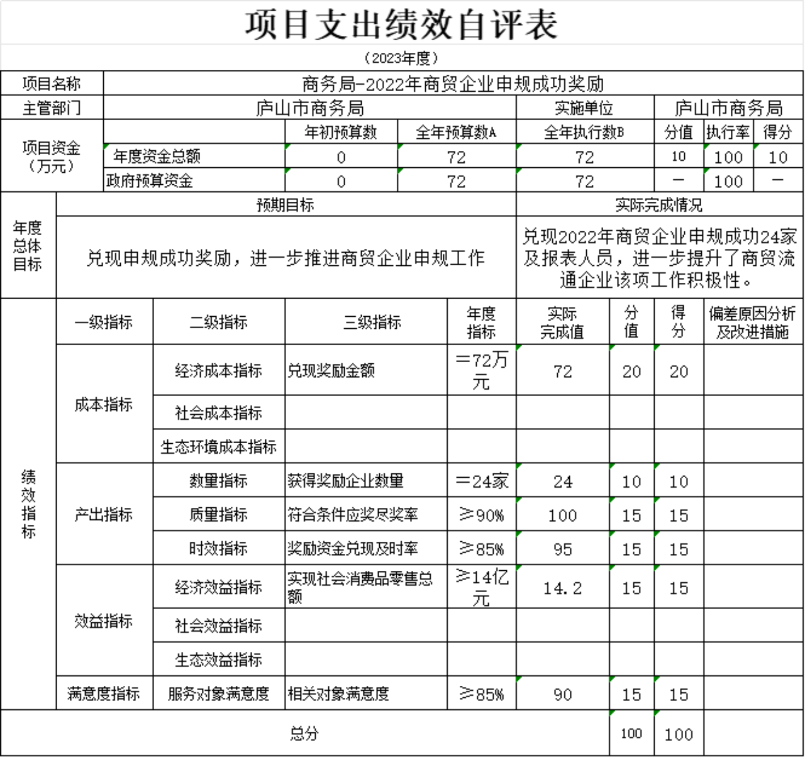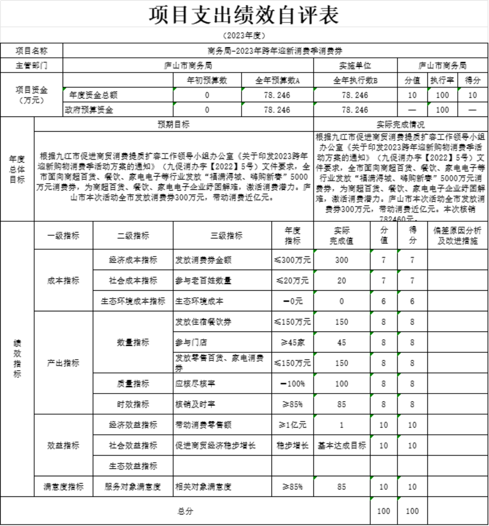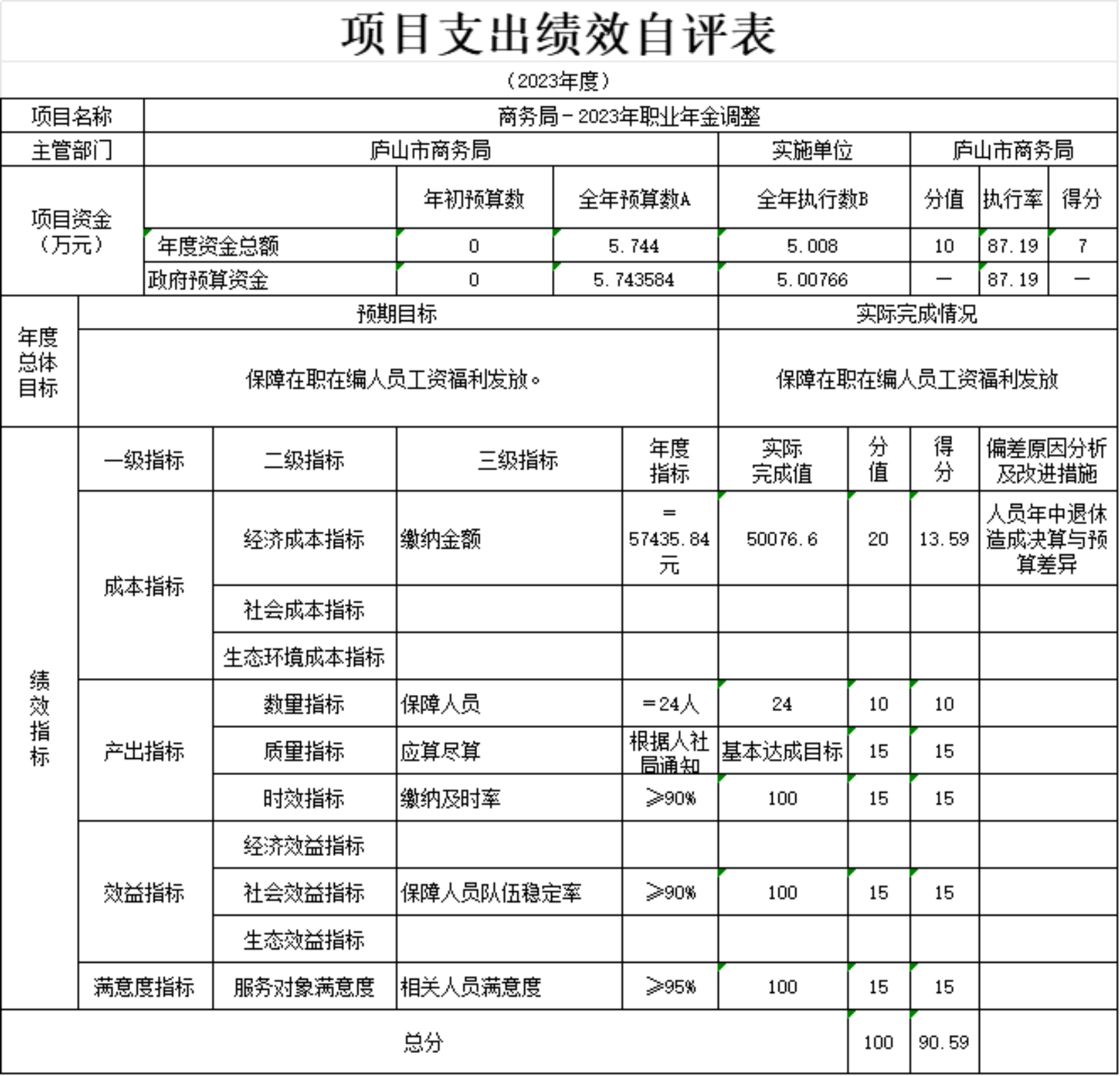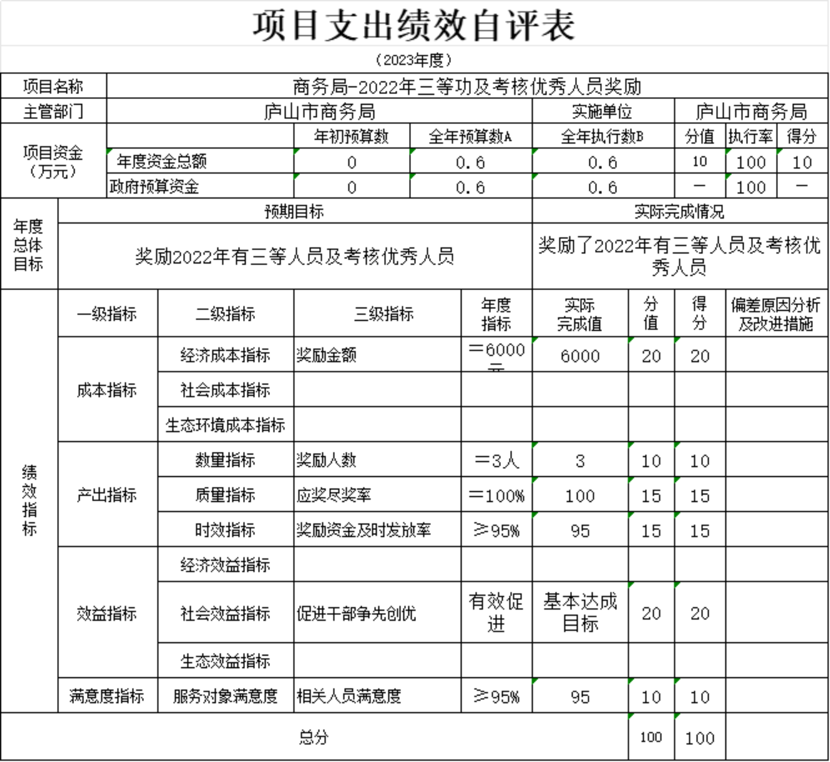 根据预算绩效管理要求,我单位组织对纳入2023年度部门预算范围的二级项目30个全面开展绩效自评,共涉及资金 3441.73万元,占项目支出总额的98.93%。其中,27个项目评价结果为“优”,1个项目评价结果为“良”,2个项目评价结果为“中”, 0个项目评价结果为“差”。