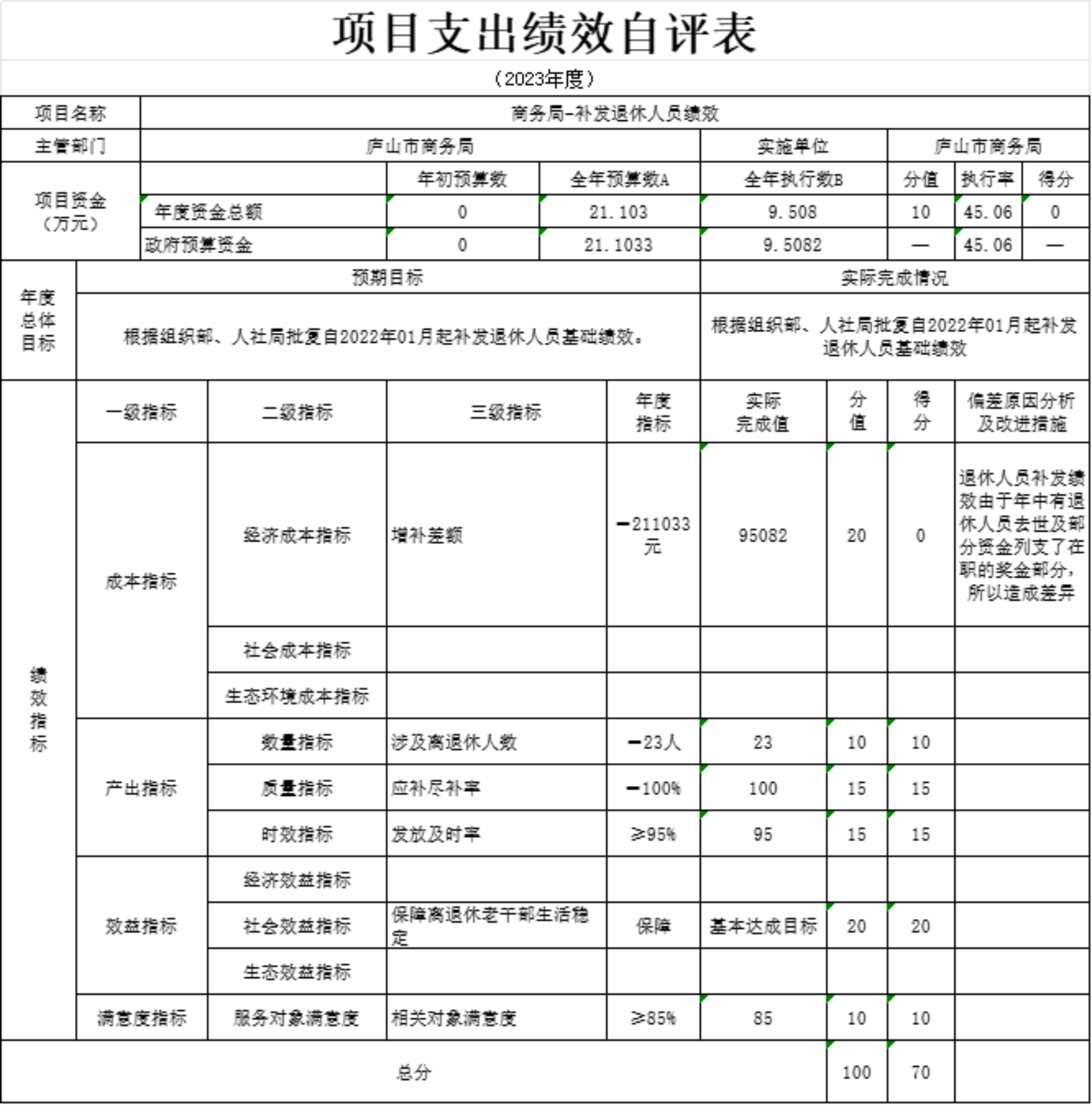 本单位2023年度支出总计4025.74万元,其中本年支出合计4025.74万元,比上年增加1909.89万元,增长90.27%,主要原因:因为2023年城乡农批市场改造专项债资金由财政局拨至商务局,再由商务局至国投代建公司,所以同比增加;结余分配0.00万元,与上年持平;年末结转和结余0.00万元,与上年持平,主要原因:自2020年起,财政统一收回存量资金,无结余结转资金。