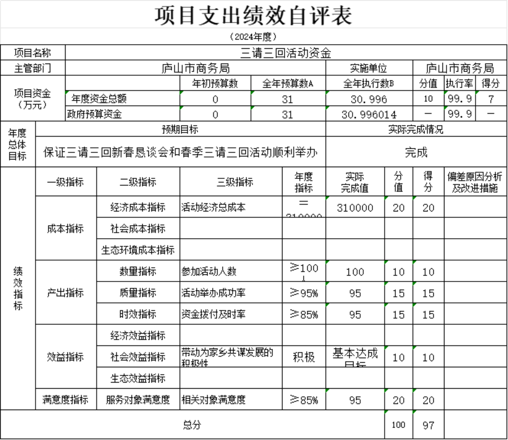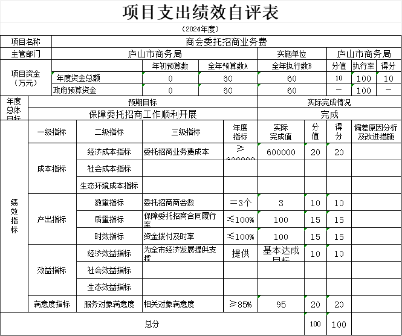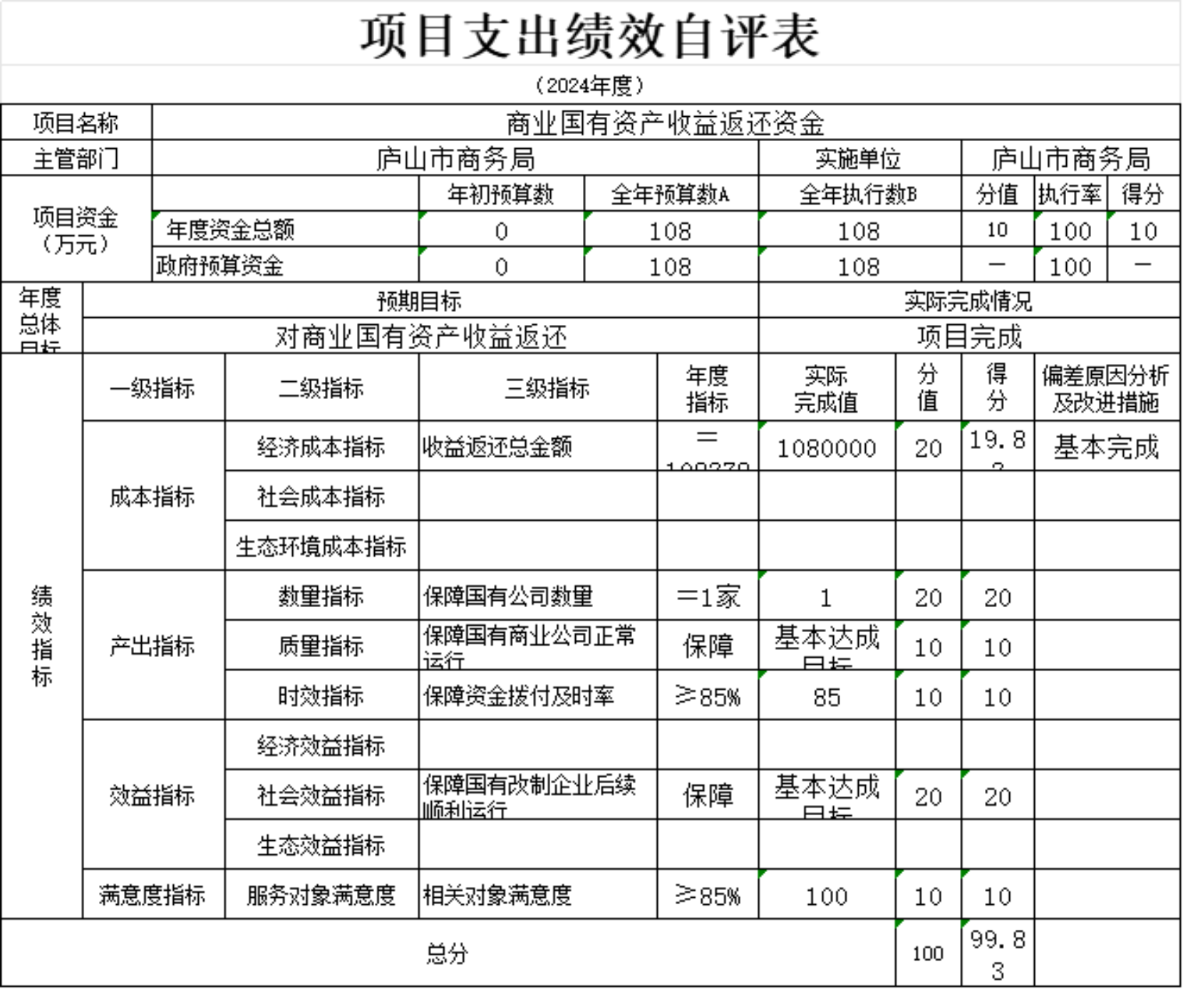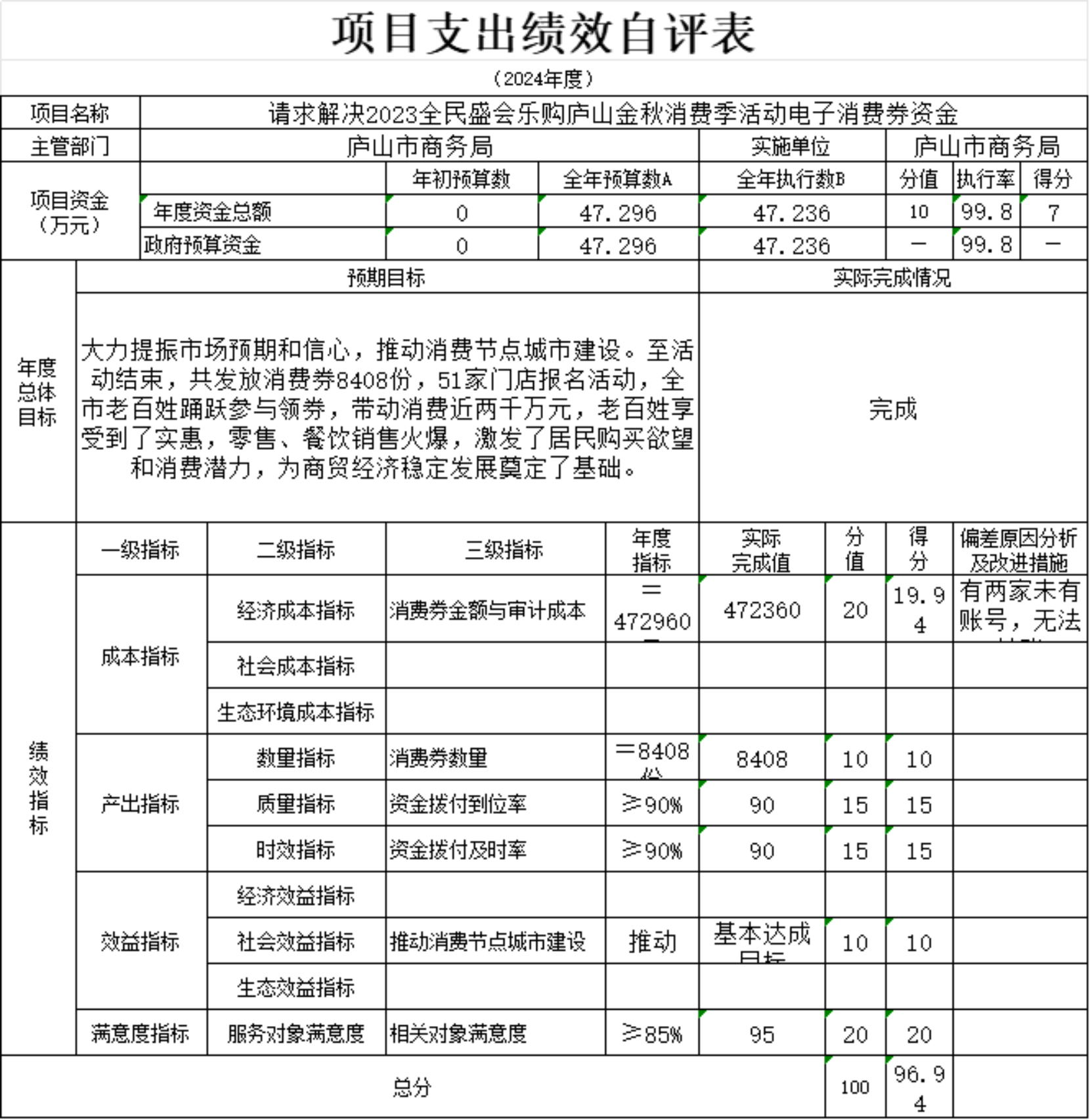 | 单位:庐山市商务局 | 2024年度 | 金额单位:万元 |
