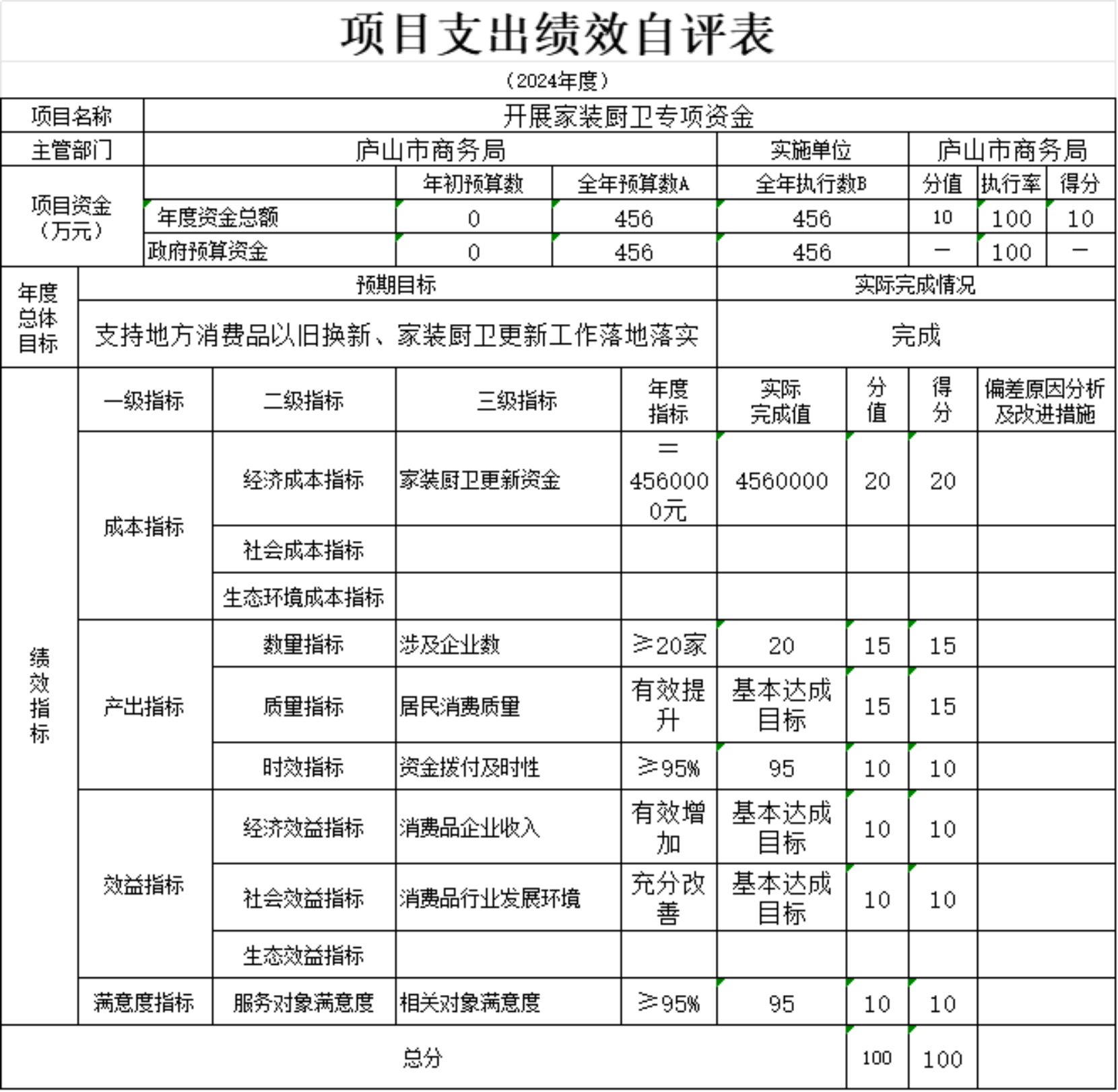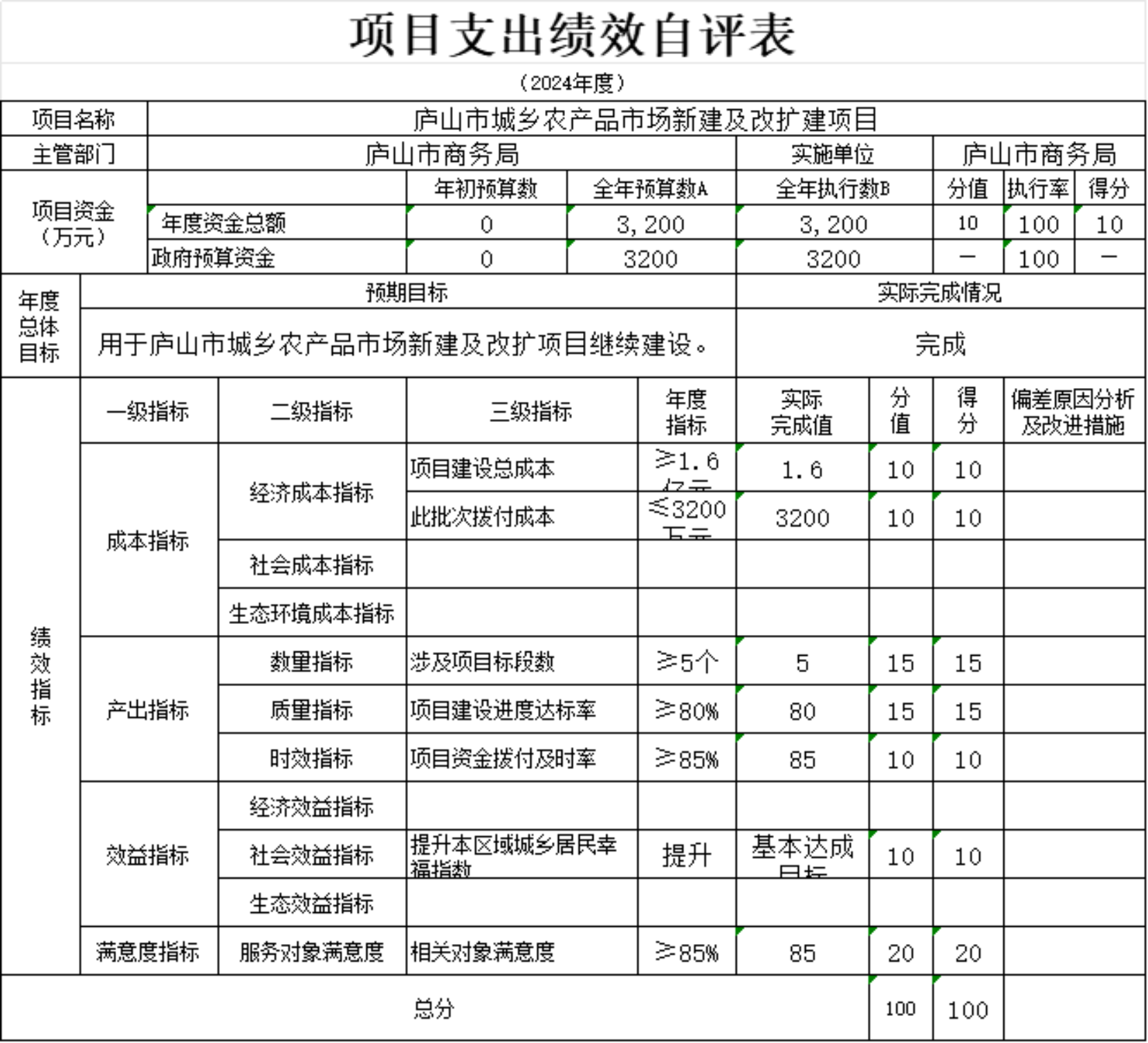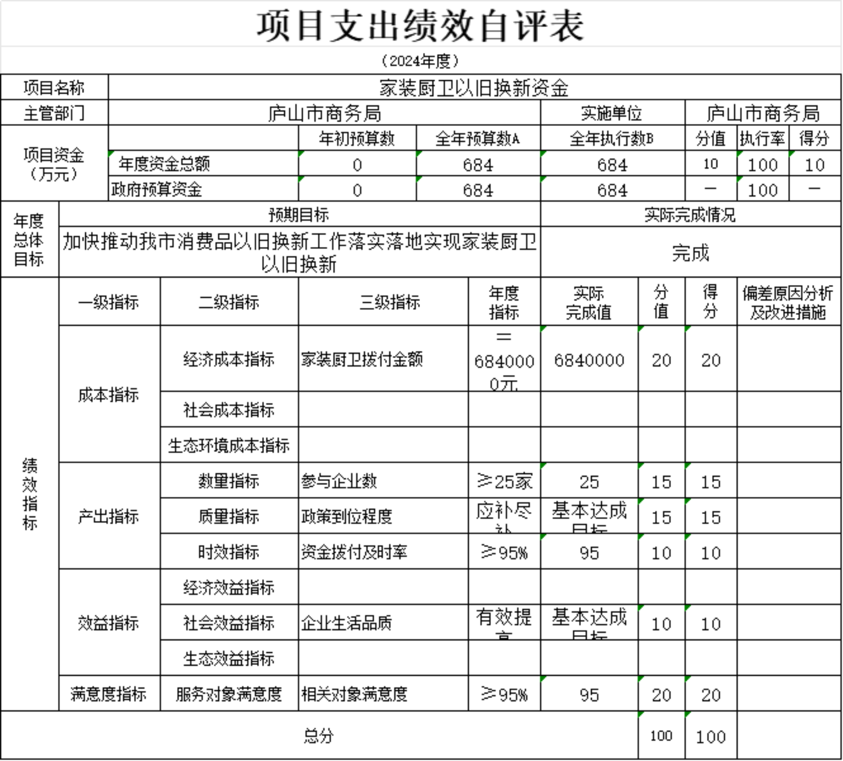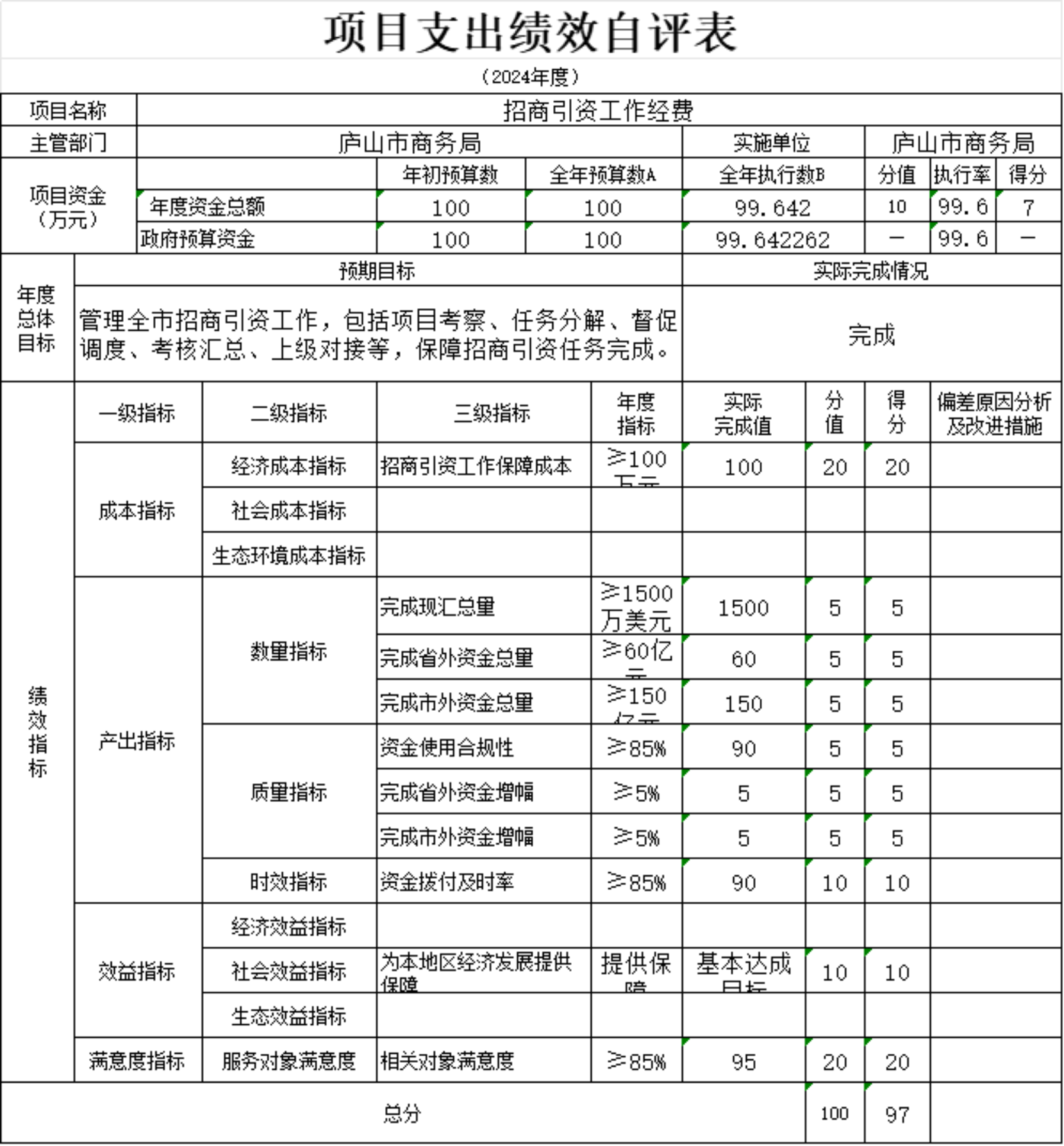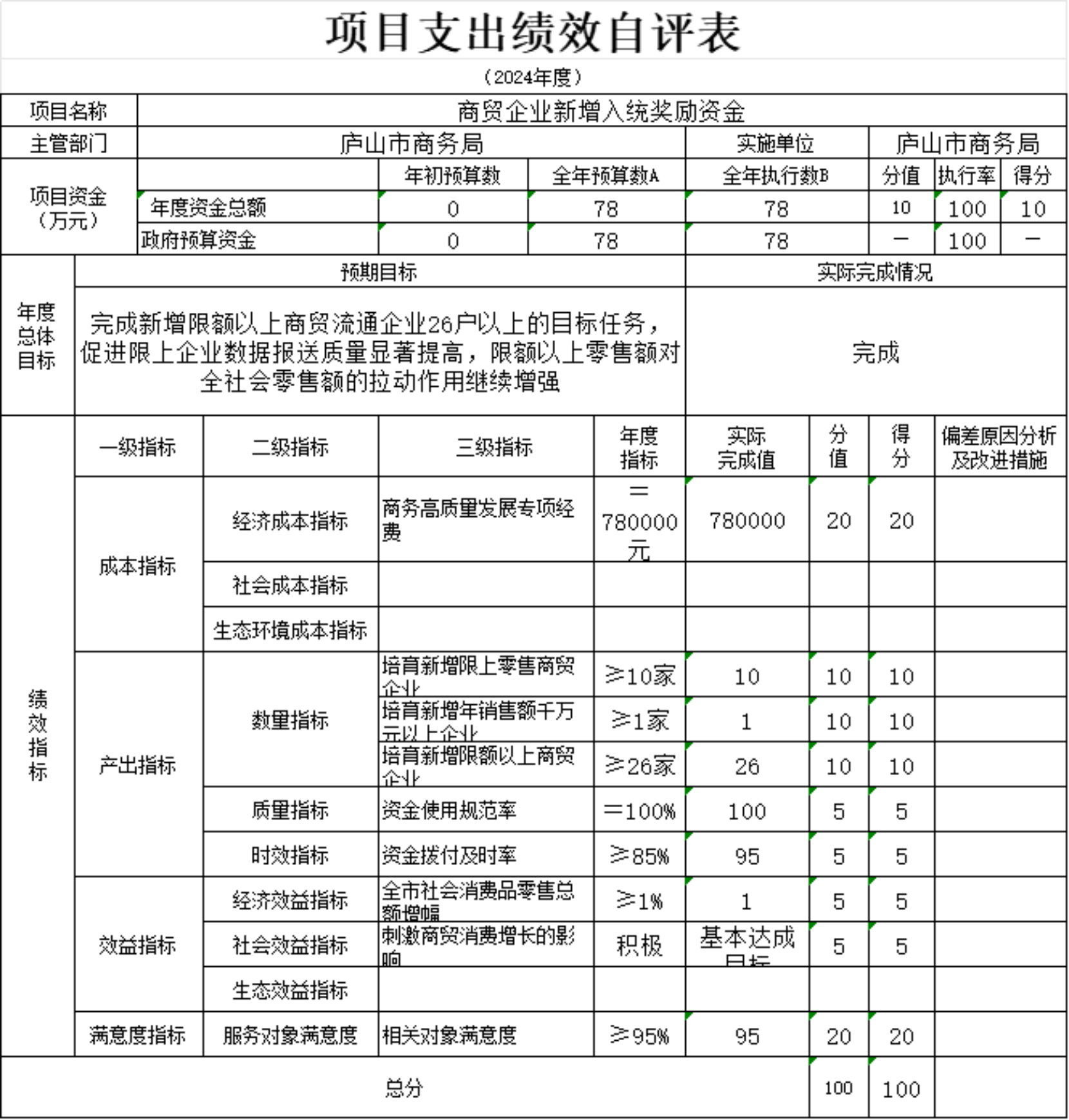 | 单位:庐山市商务局 | 2024年度 | 金额单位:万元 |