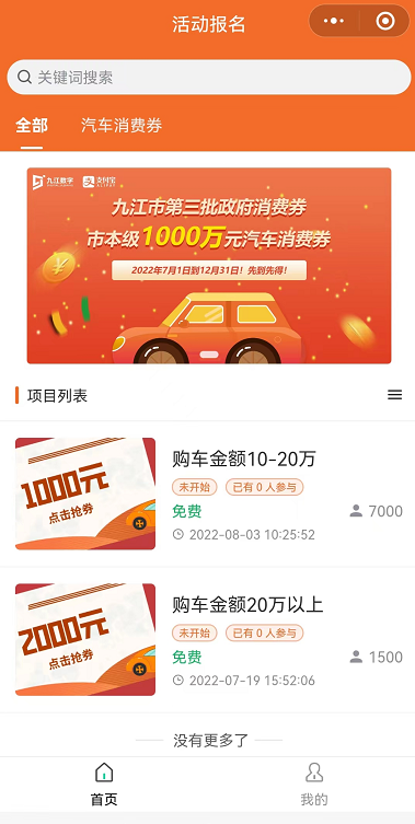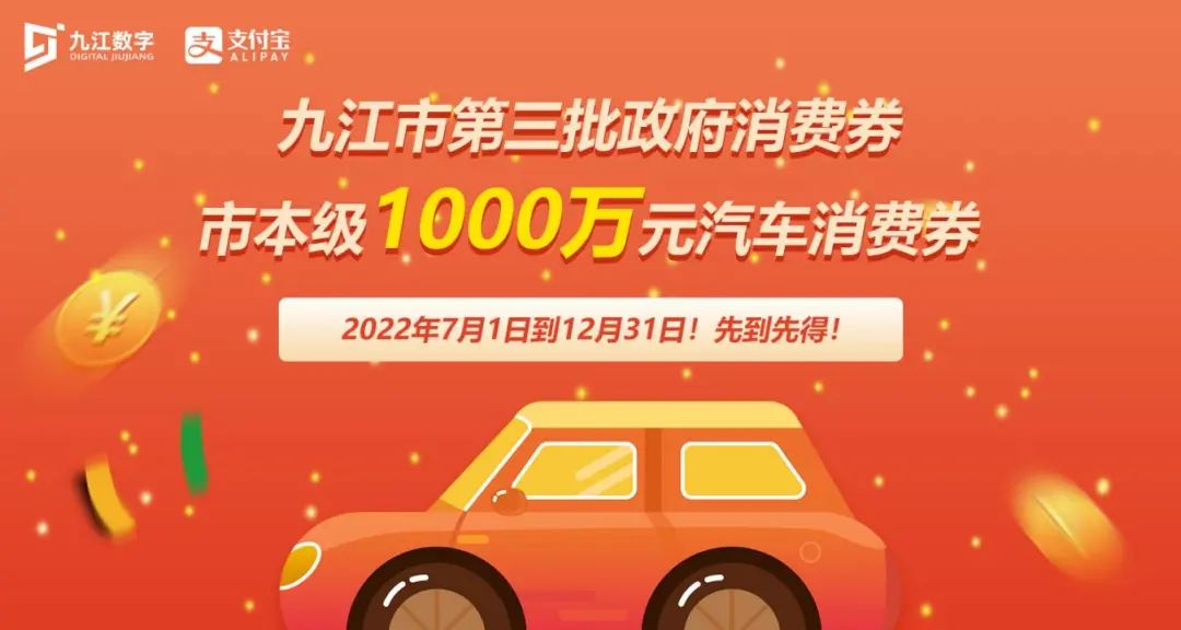 市本级加油、餐饮、零售百货家电消费券将通过银联“云闪付”APP平台发放,个人购车补贴通过九江数字产业发展有限公司制定的“我的浔城”微信公众号页面申领,而后支付宝平台发放购车消费券。消费券和购车补贴采取个人领取、先到先得方式确定活动参与人员。 (3)消费券面额:设置1000元和2000元两种面额购车消费券 (4)申领方式:2022年7月1日后在浔购买全新燃油汽车、新能源汽车并在浔上牌(以购车发票和上牌信息时间为准)的消费者,以个人申报的方式,先到先得,申领对应的汽车消费补贴,进入“我的浔城”微信公众号填报相关信息。审核通过后,将对应购车补贴通用消费券配置至购车消费者支付宝账户,购车消费者通过支付宝指定页面领取通用消费券。(购车消费券申领咨询电话:0792-8238998;15870865005) (5)申领规则:购买7座(含)以下非营运全新燃油车、新能源车的个人消费者,购车价格为10万元-20万元(不含)以内,消费券券包内包含单笔消费满100.01元减100元通用消费券10张;购车价格为20万元以上(含),消费券券包包含单笔消费满100.01元减100元通用消费券10张,单笔消费满200.01元减200元通用消费券5张。消费券最终核销面额以机动车销售统一发票中的价税合计数为准。个人消费者报废或转出名下汽车并购买新能源汽车的消费者不重复享受该政策。购买7座(含)以下非营运全新燃油车、新能源车的个人消费者予以享受购车补贴。购车补贴消费券,不找零、有效期截止2023年1月31日,逾期作废,不予补偿,如在规定期限内未使用,消费券自动失效。2、加油、餐饮和零售百货家电消费券