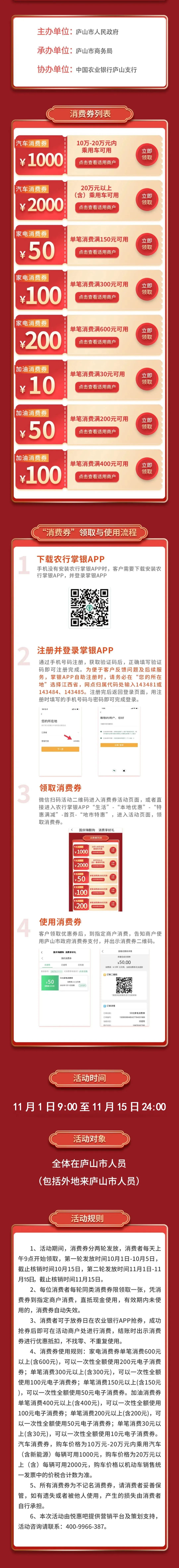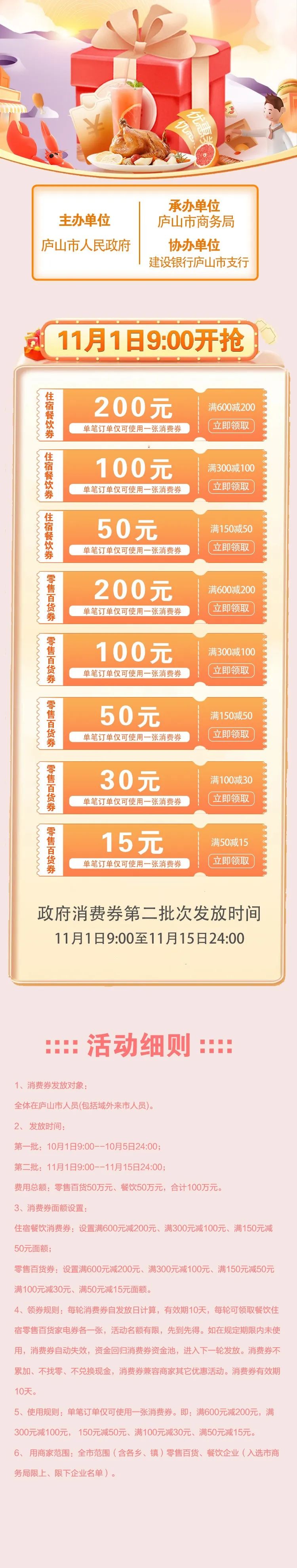 11月1日9时准时开抢!庐山市政府消费券又来了!
