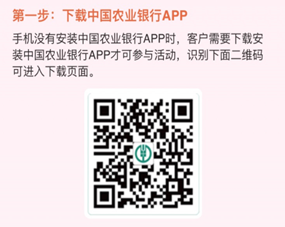 1、确保手机已安装并注册中国农业银行APP,手机未安装进入消费者需进入手机应用市场搜索“中国农业银行”或扫描下面二维码下载安装并注册为中国农业银行掌银用户。