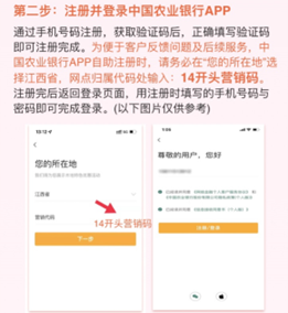 2、为便于客户反馈问题及后续服务,中国农业银行APP自助注册时,请在所在地选江西,输入代码143481。