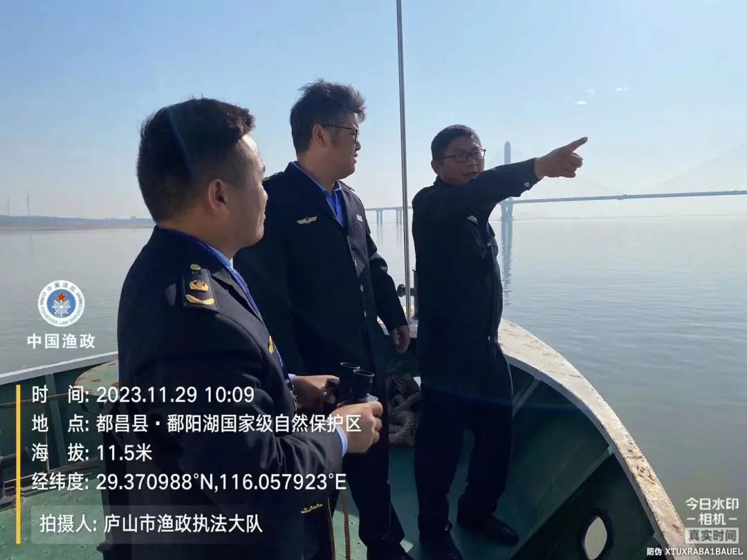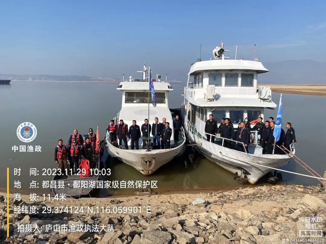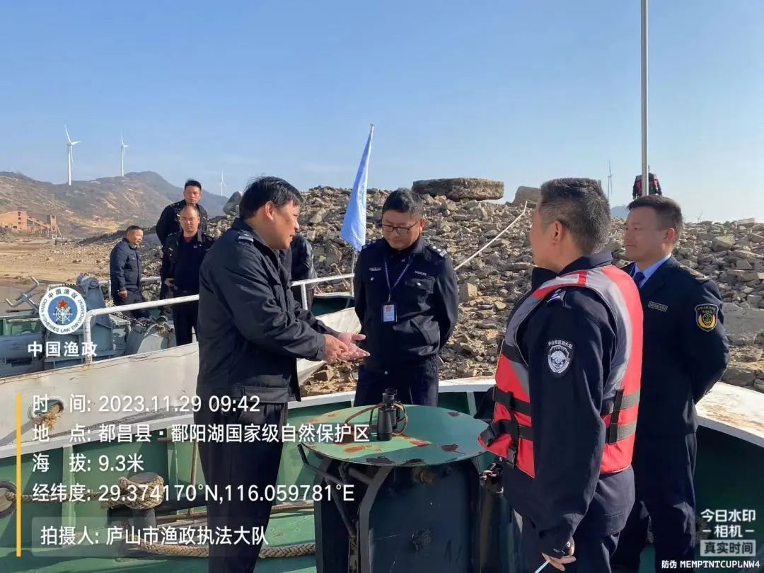 庐山、都昌两地渔政在鄱阳湖水域开展联合执法行动