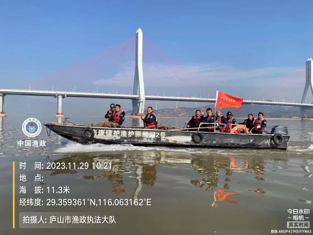 11月29日,庐山市渔政执法大队带领南康站巡护队、蓼南站巡护队与都昌渔政执法队伍在鄱阳湖水域开展联合执法行动。两地渔政执法负责人分别带领依法队伍对鄱阳湖二桥、饶河口、沟子口、江豚保护区等重点水域持续巡查,重点打击非法捕捞、锚鱼、违规垂钓等破坏渔业生态资源的违法行为,持续巩固鄱阳湖禁捕工作成果,为十年禁渔保驾护航。