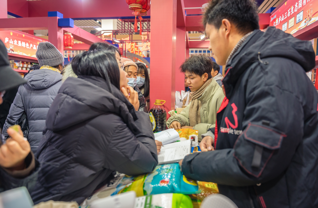 年货节现场,人头攒动,购销两旺,新鲜的水果、干货、板鸭、脐橙、大米等年货应有尽有。庐山市14家企业为市民朋友们带来质优价美的品牌产品,深受消费者喜爱。