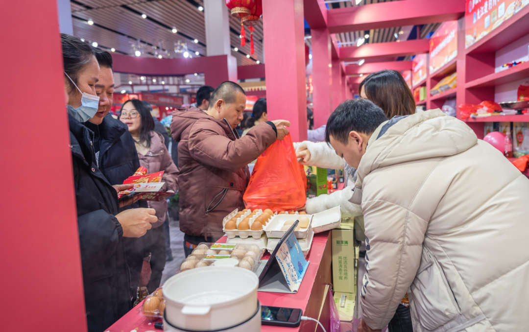 “带孩子来这儿逛逛,看到这边挺热闹的。感觉比以前更有年味了,带一副对联也挺开心的。”家住附近小区的李女士,趁空闲带家人一起来逛年货节,提前感受年味。