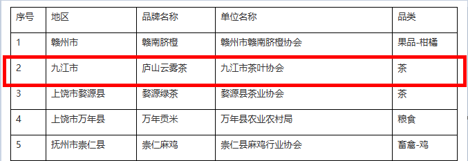 庐山市上榜2023年江西农产品“二十大区域公用品牌”和“企业产品品牌百强榜”名单