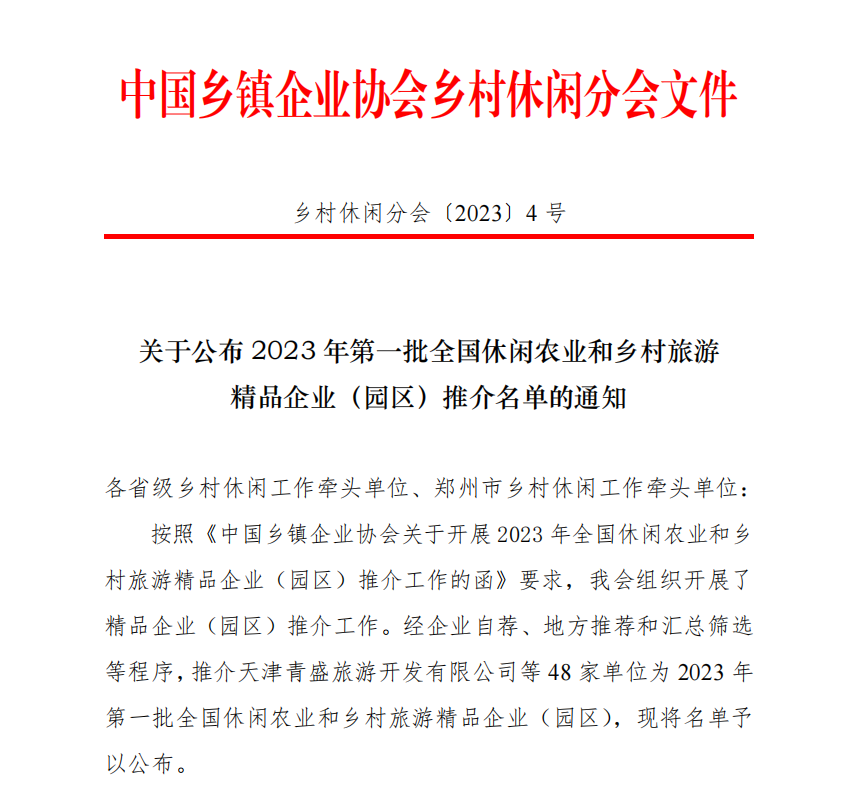 来源:乡村休闲分会【2023】4号文件《关于公布 2023 年第一批全国休闲农业和乡村旅游精品企业(园区)推介名单的通知》