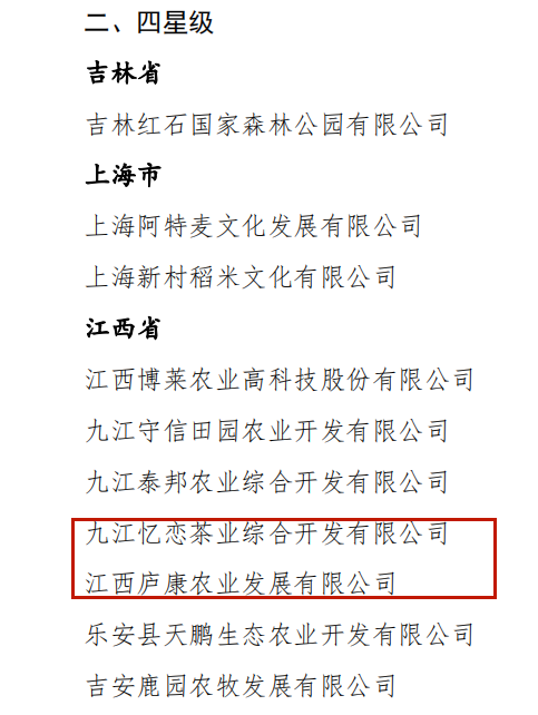 庐山市两家企业荣登2023年第一批全国休闲农业和乡村旅游精品企业(园区)推介名单