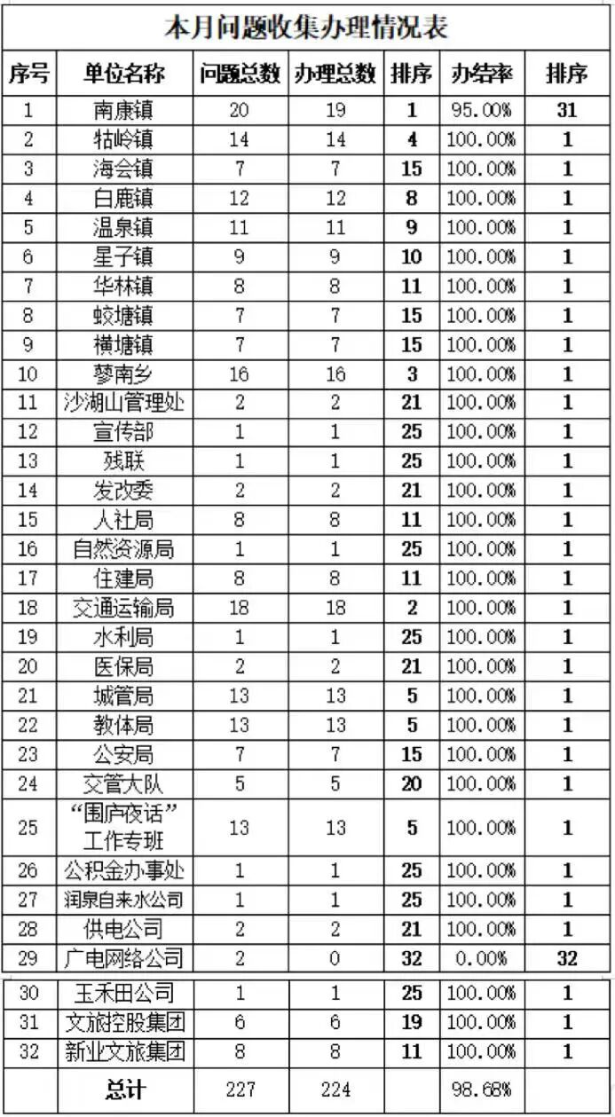 华林镇:依托“1+N全员包联”机制,推动镇57名机关干部围绕居住环境、社会帮扶等六大方面问需于民,走访常住村民100余户。建立问题闭环处理机制,通过“实地核查+群众评议+集中会商”跟踪落实,解决群众困难诉求、矛盾纠纷等50余个,解决率达100%。