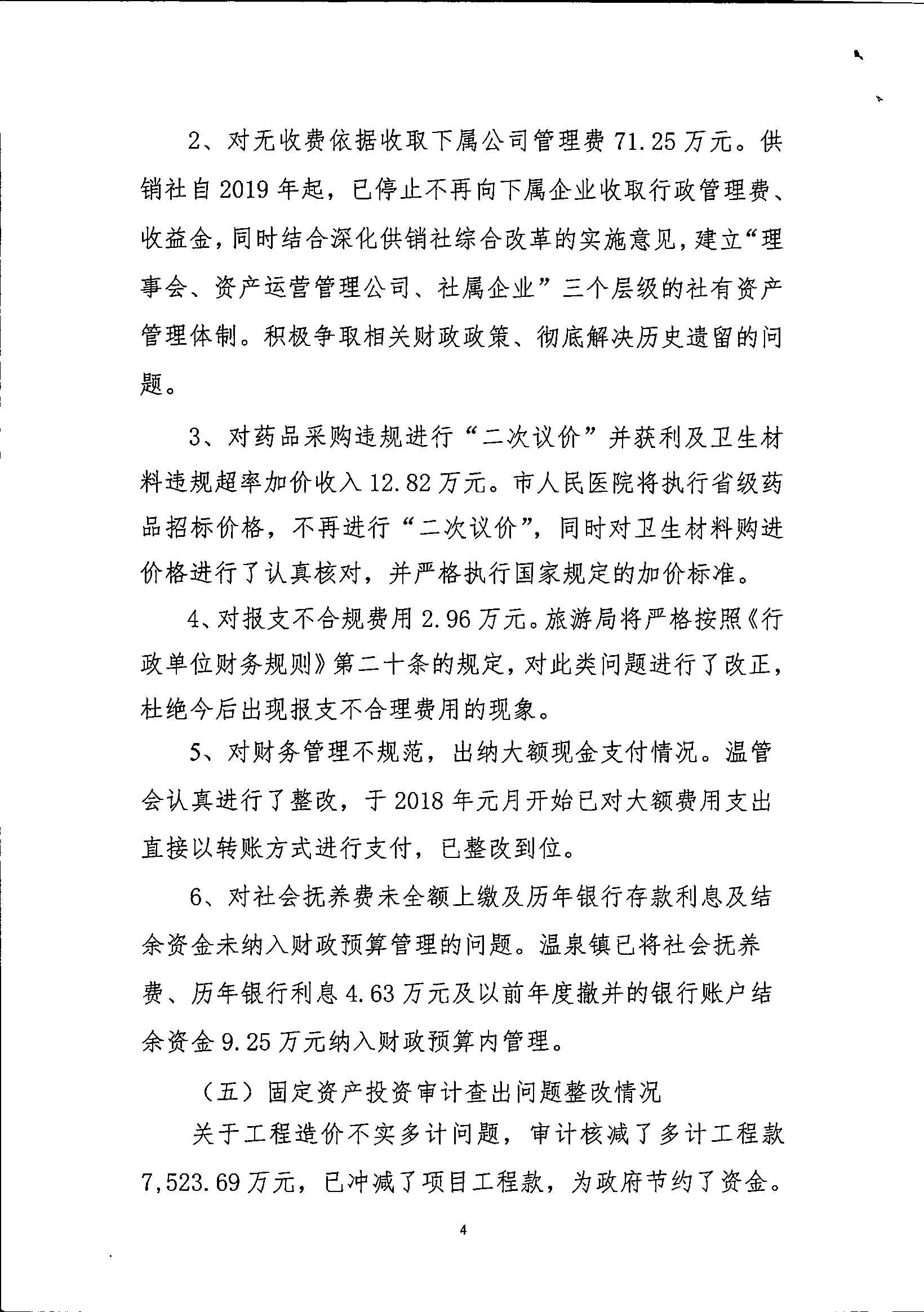 关于庐山市2018年市本级预算执行审计工作报告整改情况