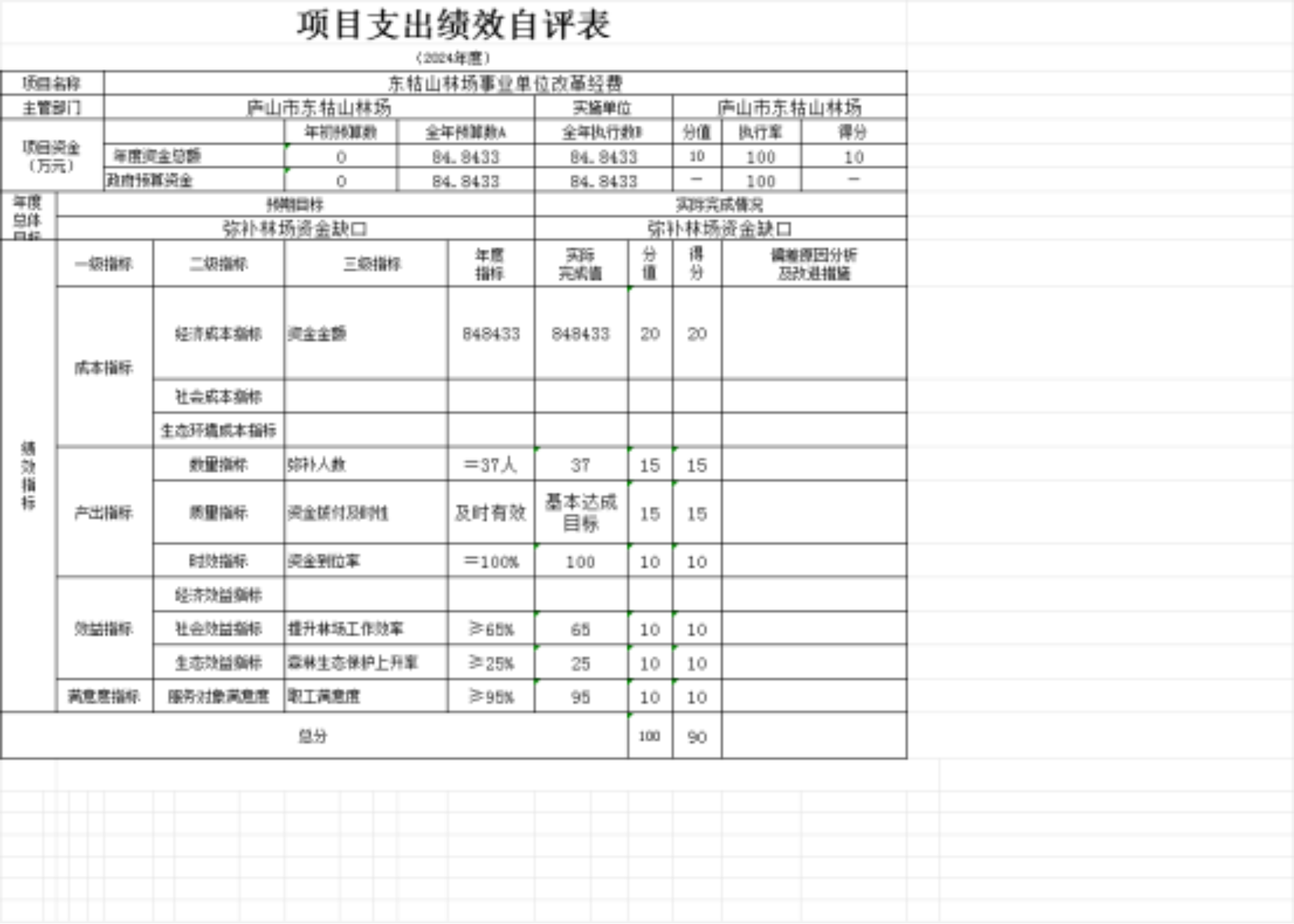 | 部门:庐山市东牯山林场 | 2024年度 | 金额单位:万元 |