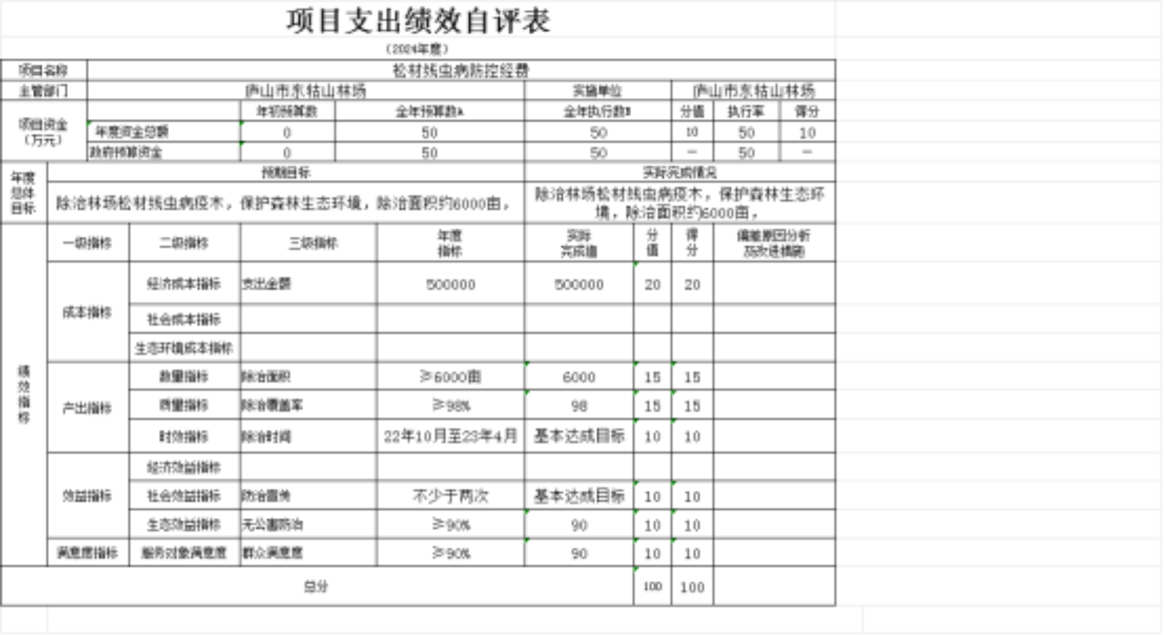 (四)项目效益情况。增加松材线虫病的除治措施,有效减少感染传播风险。