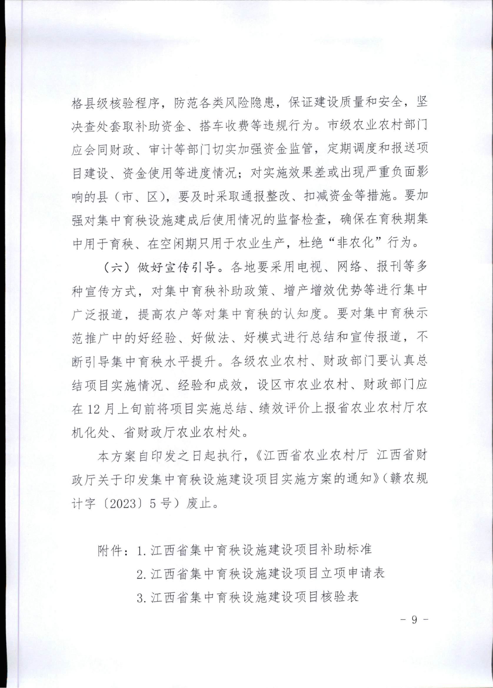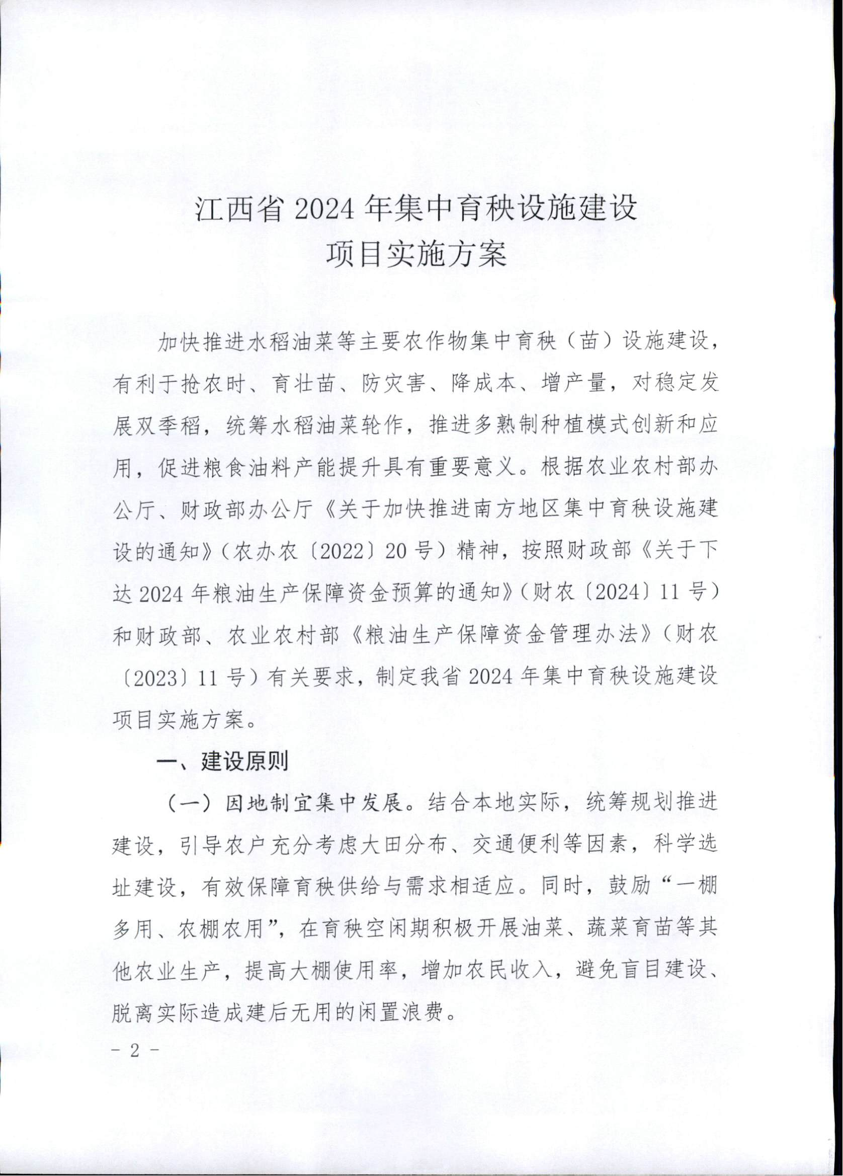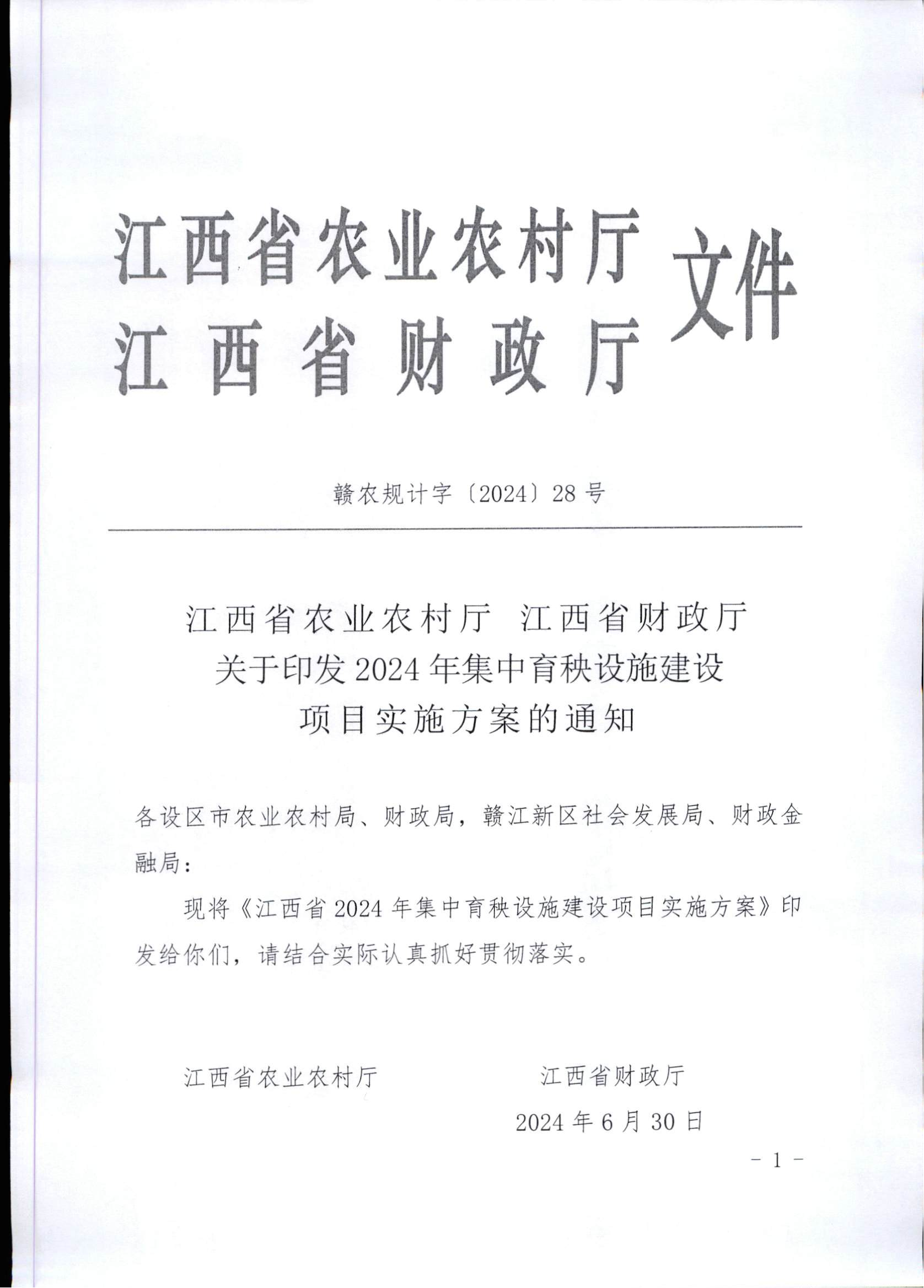 江西省农业农村厅 江西省财政厅 关于印发2024年集中育秧设施建设项目实施方案的通知