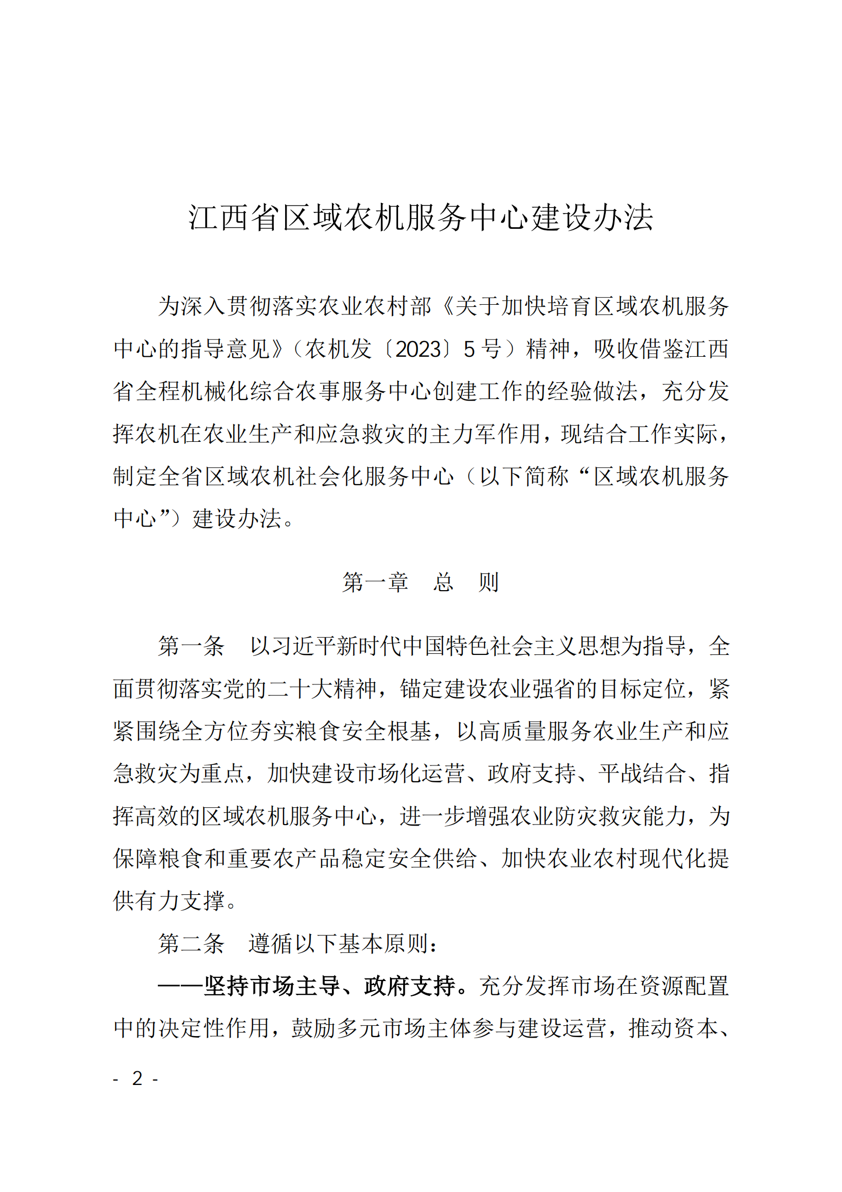 江西省农业农村厅关于印发《江西省区域农机服务中心建设办法》的通知江西省农业农村厅关于印发《江西省区域农机服务中心建设办法》的通知