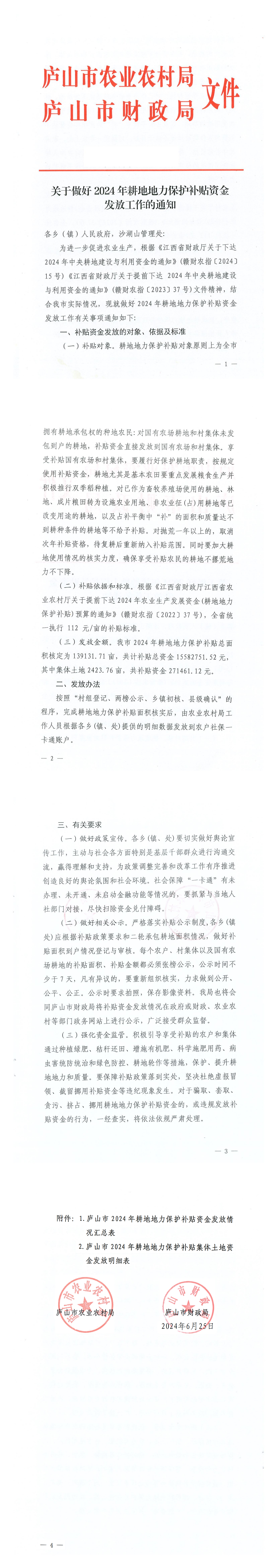 关于做好2024年耕地地力保护补贴资金发放工作的通知