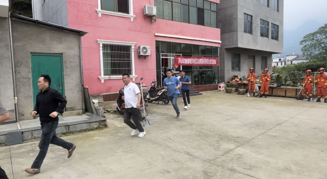 随着地灾警报拉响,应急演练有条不紊地展开。各组分工明确、配合紧密,村干部保护居民撤离隐患点,紧急抢险人员赶赴滑坡点进行紧急处置。