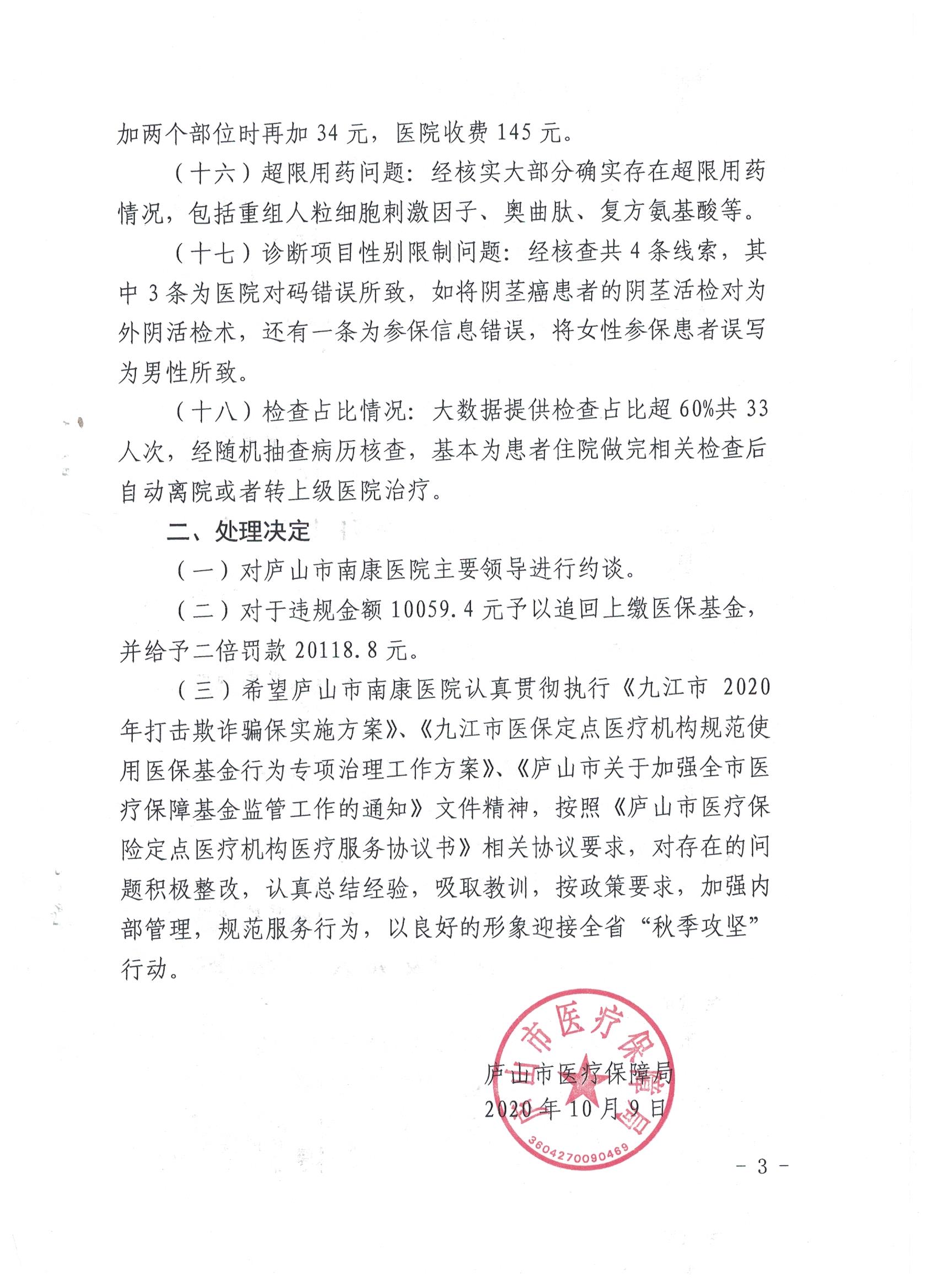 关于对庐山市南康医院规范使用医保基金行为专项检查情况的通报.pdf