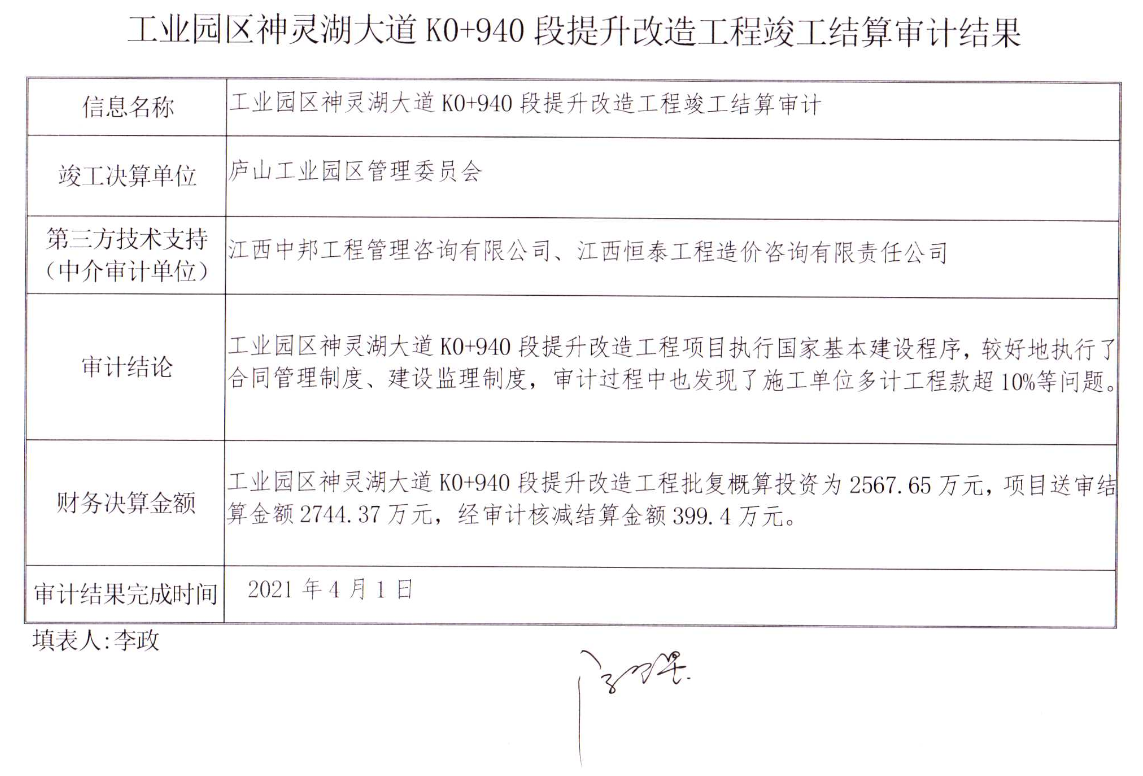 庐山市2021年竣工决算审计公示 第2期