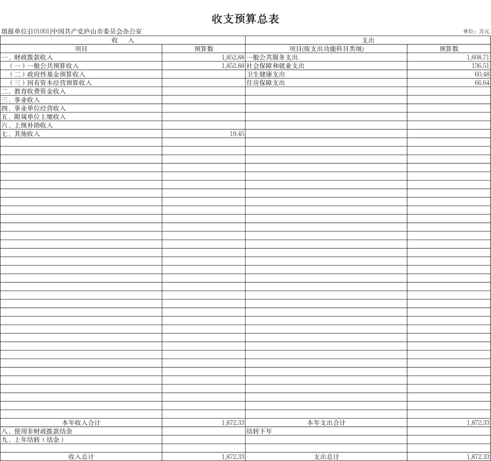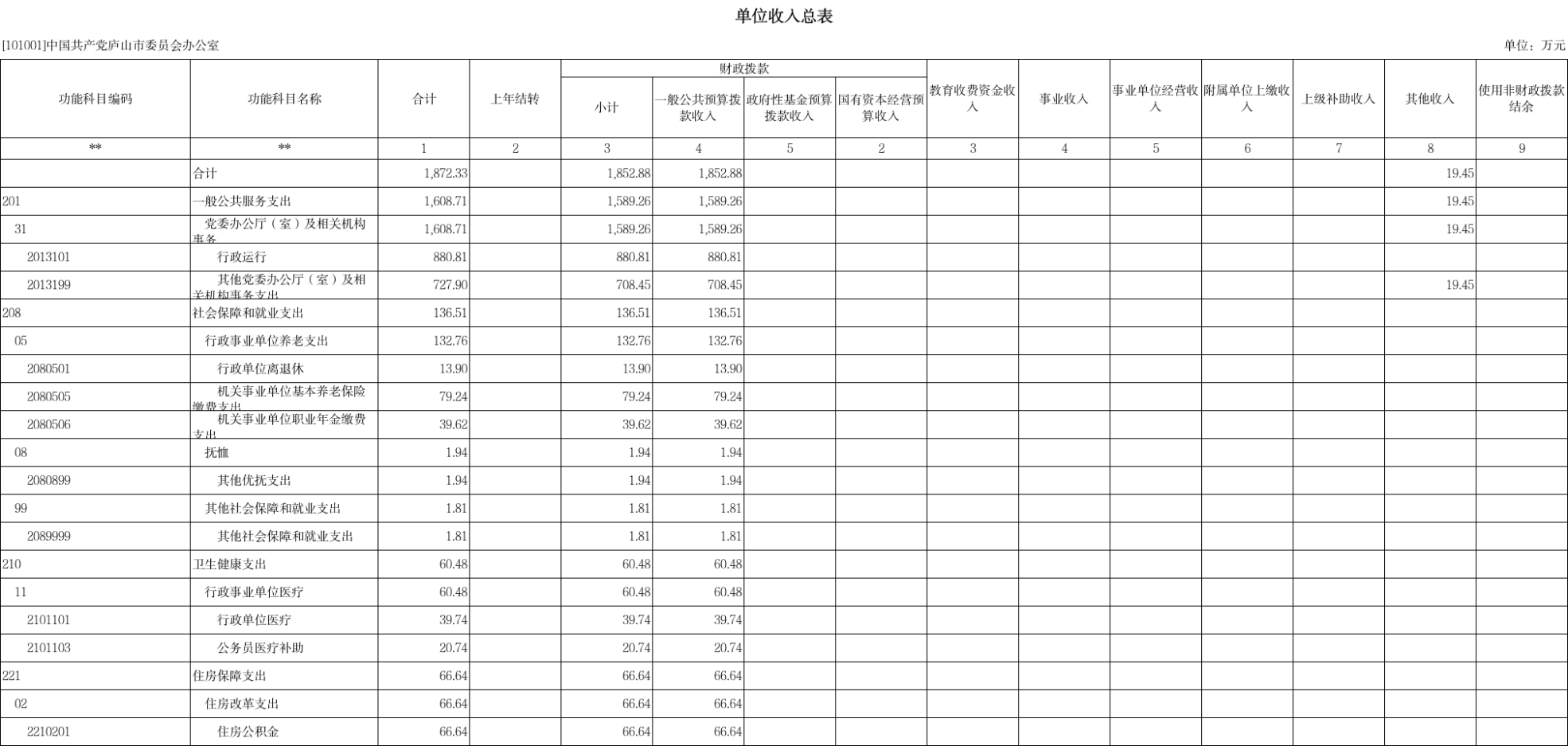 二、《单位收入总表》