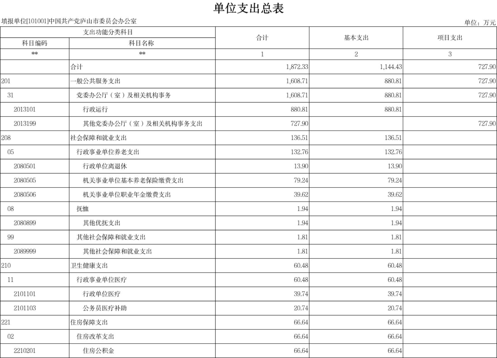 三、《单位支出总表》
